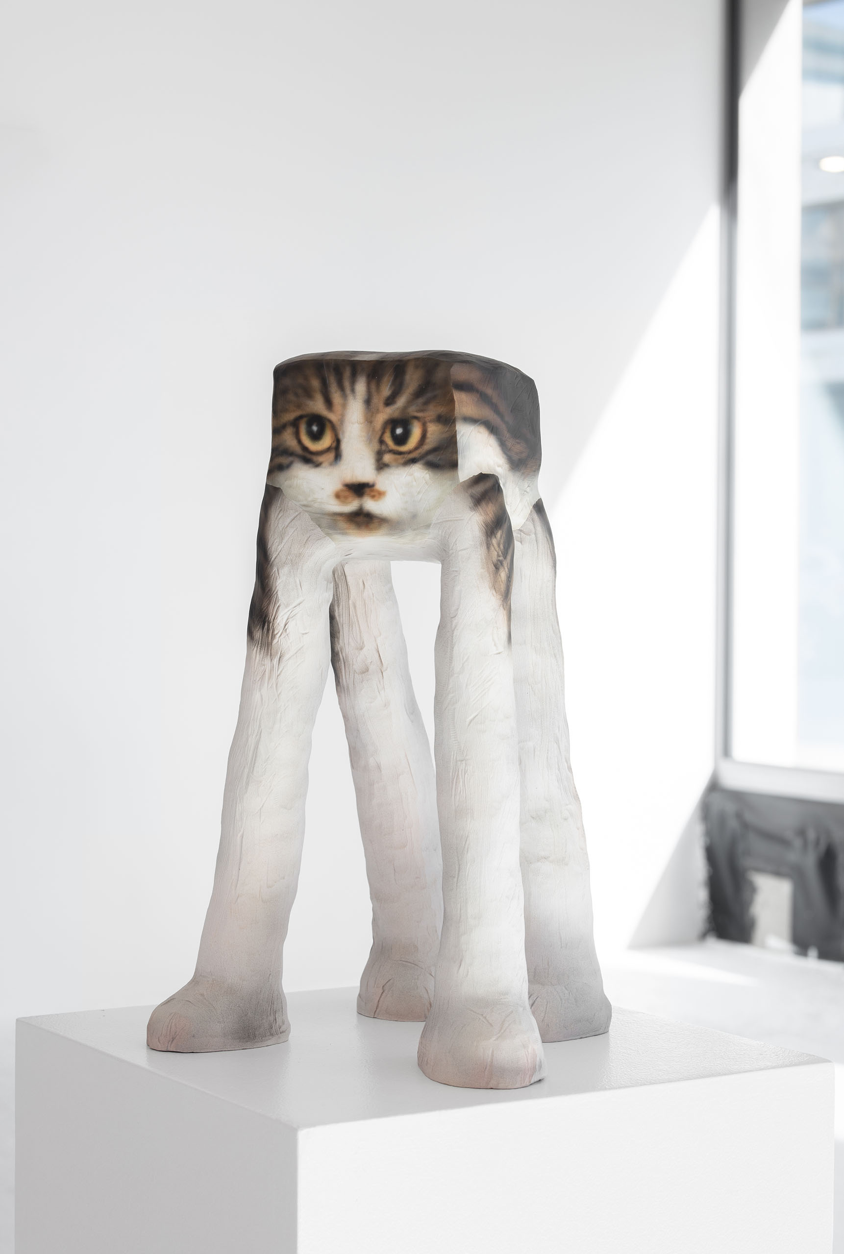 Subsequent works actively explore the hybridity between digital and reality. The 'Hiro is Everywhere' (2022–) series centers around his companion cat, Hiro, depicting the transformation of digital images and reality into new entities. The series investigates the intersection between rapidly replicating meme-like images of Hiro and the real, everyday presence of the cat, blurring the boundary between the digital and the real.