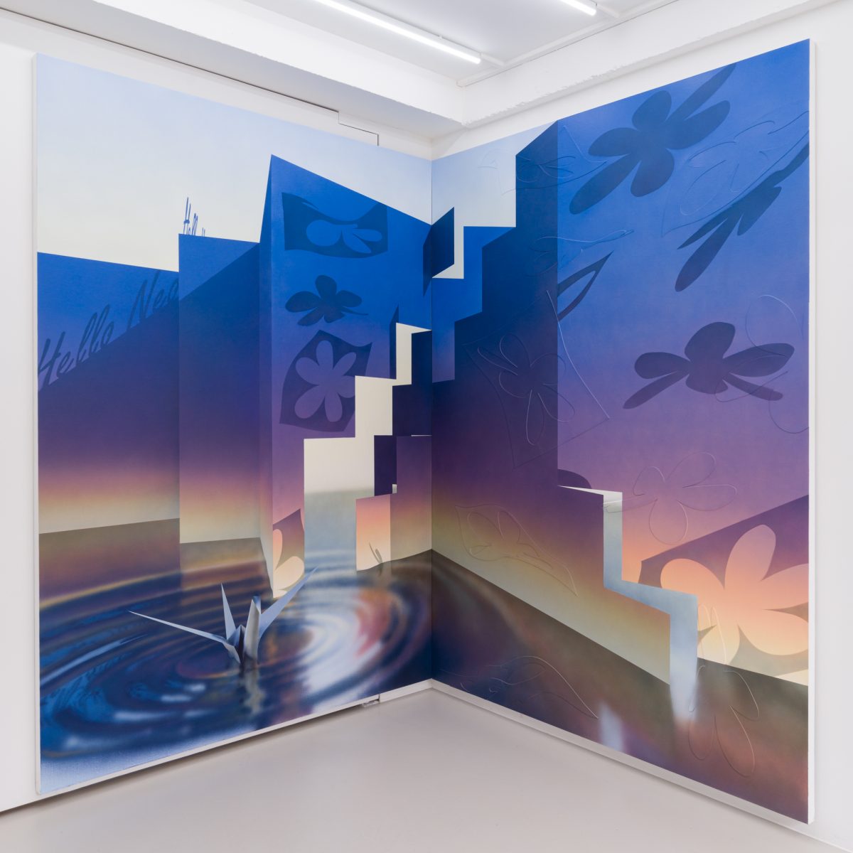 Since 2022, her experiments with flatness and dimensionality have expanded beyond the pictorial frame to occupy the exhibition space as installations. During this period, she incorporated industrial materials such as stainless steel, acrylic, and resin to convert the visual illusions of painting into spatial sculptures, utilizing elements like droplets and reflective surfaces to rematerialize immateriality in her sculptural language.