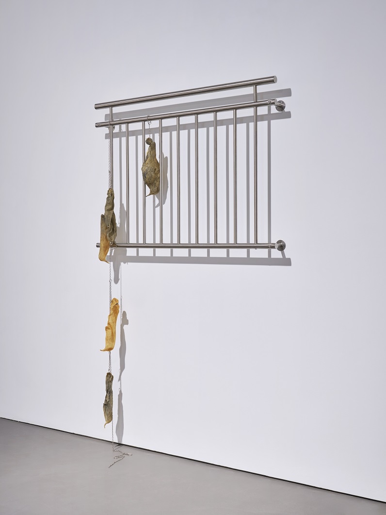 Hyojoo Jang has built a sculptural language that resists the loss of tactility and materiality in an era dominated by digital imagery. Based on the concept of “material play,” she continues to combine and juxtapose nontraditional materials in a way that destabilizes the binaries of vision and touch, inside and outside, reality and virtuality. Her tactile strategy of transforming latex and silicone into sculptural skin has positioned her work at a distinct and original point in contemporary sculpture.