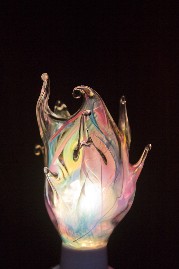 Park’s practice is grounded in traditional glassmaking techniques such as glassblowing and lampworking. In early works like Gloryhole Bulb(2015), she used these analog methods to craft functional lighting objects, transforming intangible light into material form. These pieces exemplify the hybrid nature of her early work—operating at the intersection of form and function, art and commerce.