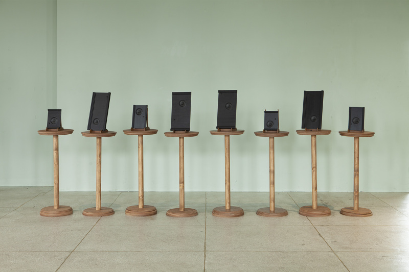 This concept expanded in the following year’s solo exhibition 《Performance for Topological Sense》 (TINC, 2021). Making use of the spatial context of a former church, Seo constructed a site where Eastern and Western instruments, religious symbols, and the positions of audience and performer intermingled. For instance, the installation Dangsan Column (2021) resonated shamanistic bells within a Christian cathedral space, overturning its sacred order. Such collisions exemplify the “topology” that Seo consistently investigates—the transformation and inversion of relations.