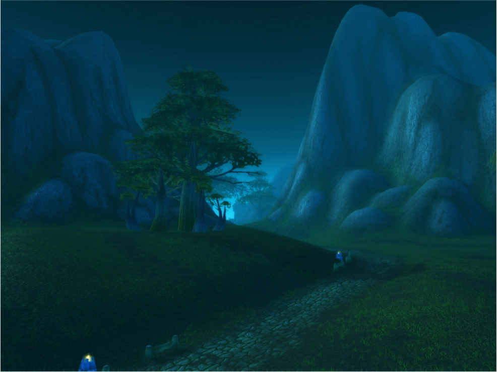 The in-game landscapes, captured from a monitor, are greatly enlarged and blurred, rendering their subjects indistinguishable. These transformed images appear entirely different from what he initially encountered. Although the game world is at its busiest in the early hours of the morning, the scenes in his photographs are devoid of any presence, presenting instead an empty and desolate landscape.