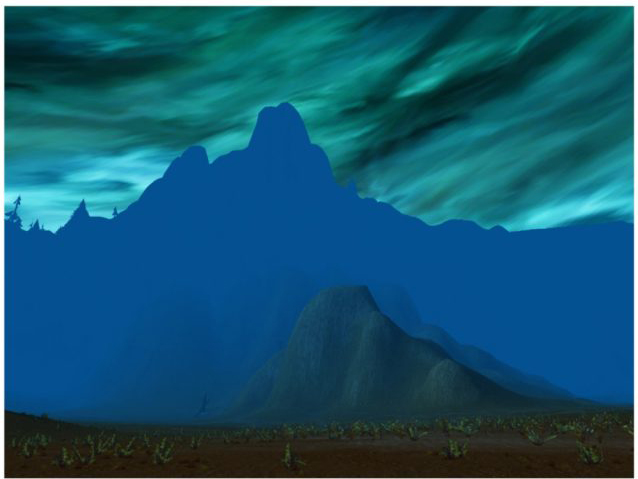 The in-game landscapes, captured from a monitor, are greatly enlarged and blurred, rendering their subjects indistinguishable. These transformed images appear entirely different from what he initially encountered. Although the game world is at its busiest in the early hours of the morning, the scenes in his photographs are devoid of any presence, presenting instead an empty and desolate landscape.