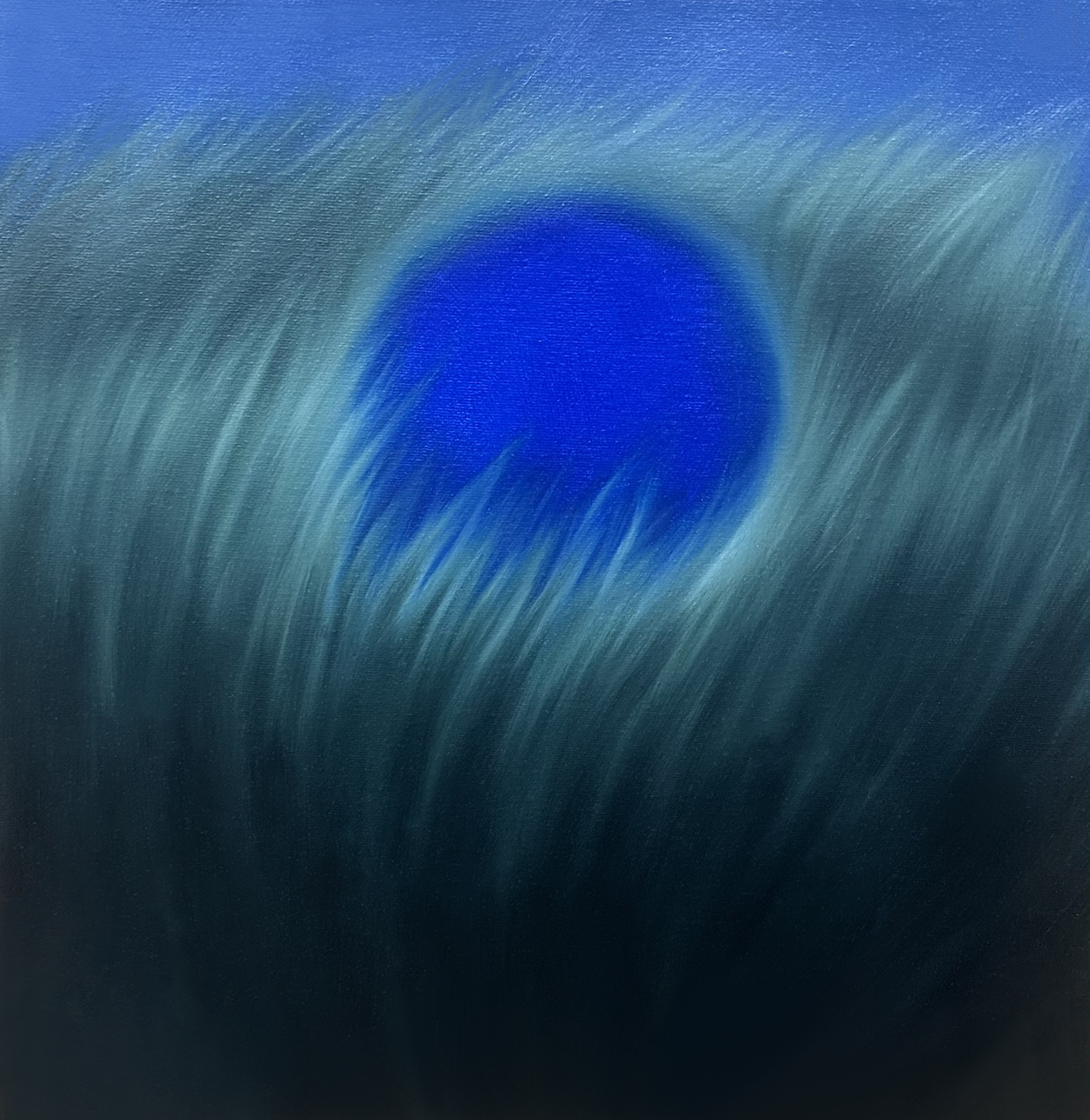In 《BENEATH BRANCHES》, the canvas becomes more abstract than in previous periods, with deep browns and blacks contrasted sharply by flickering blue light. The nest appears as a microscopic structure, while the surrounding forest dissolves into abstraction, traversed by fractures of sensation. Works from this period move beyond the category of “landscape,” entering a psychological and ontological space where emotion, memory, sensation, death, and renewal coexist. The organic lines that form the painting no longer demarcate individual beings; instead, they serve as visual metaphors for the nonlinear ecological network in which all forms of life are intricately entangled.