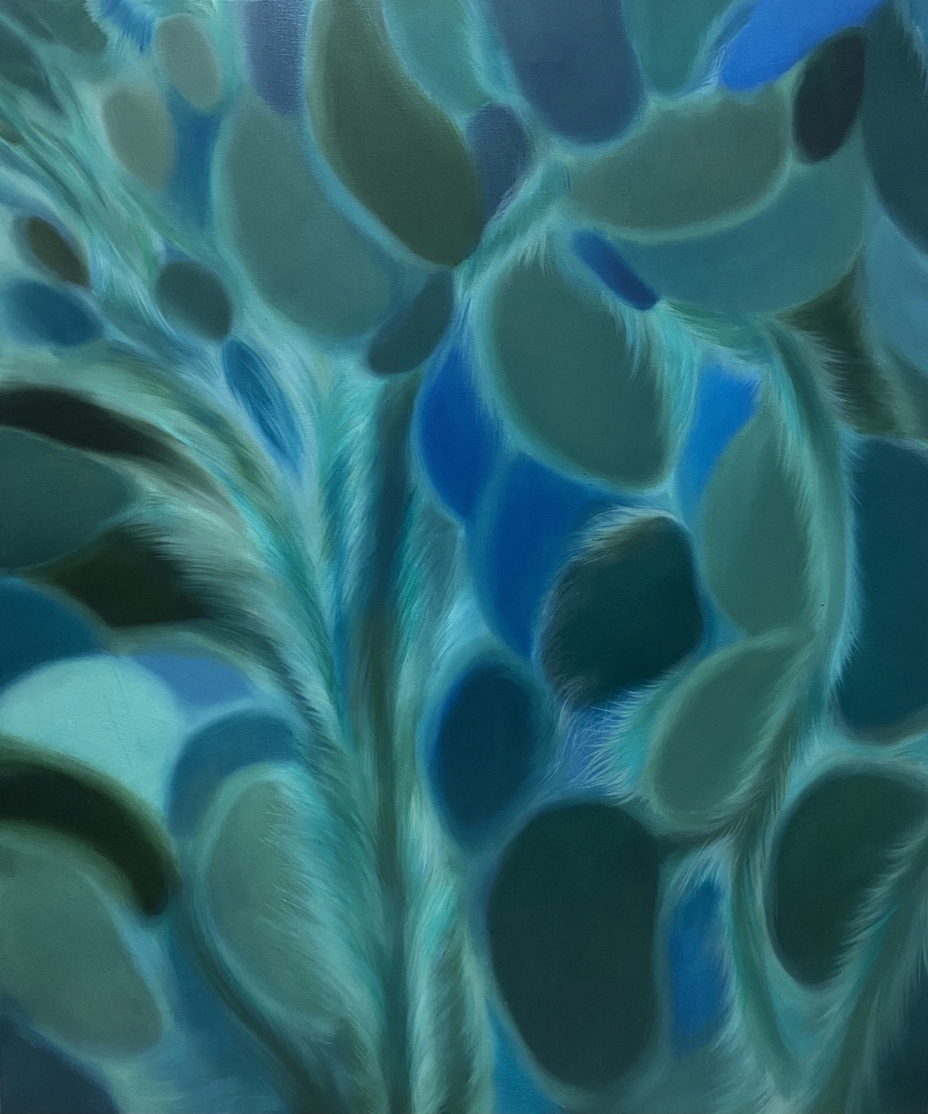 Kim merges emotions, sensations, and reflections into the act of painting, blending figurative landscapes with abstract bodily sensibilities. Rather than distinguishing between species, her images follow shared affective flows, allowing drifting, rhythmic life-forms to guide viewers into a virtual ecosystem on the canvas.