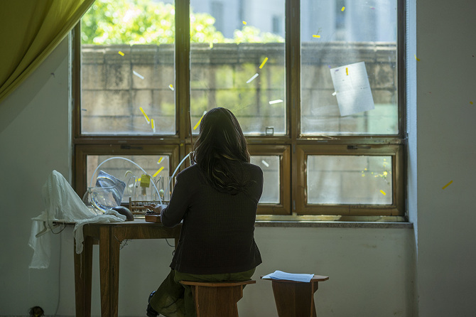Her practice begins with attending to the small movements of light and sound within the phenomena of passing time. She observes the subtle tremors of things that exist around us yet are easily overlooked—light, shadows, energy, relationships, and other delicate vibrations.