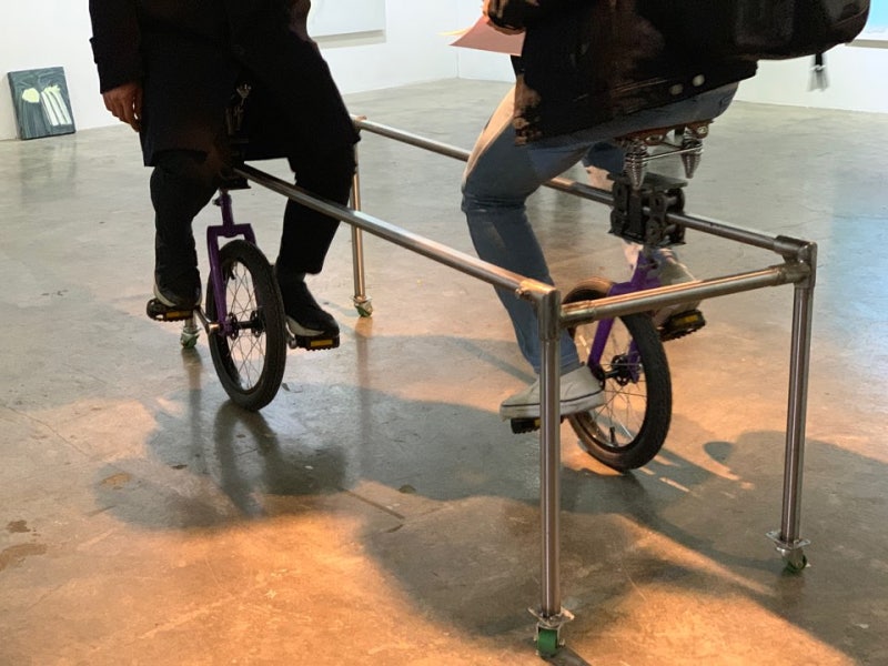 The work From 60cm to 120cm (2017–2019) is a representative example that explores how psychological distance between people manifests as physical behavior. By observing the range of personal space that individuals unconsciously maintain and translating it into an installation structure, Cho reveals how intimacy and tension, comfort and discomfort, are sensed through the act of adjusting distance. This interest later narrows to relationships between two individuals, as seen in Relative Velocity of One Revolution(2019), where the balance of a relationship is shown to be formed through constant adjustment.