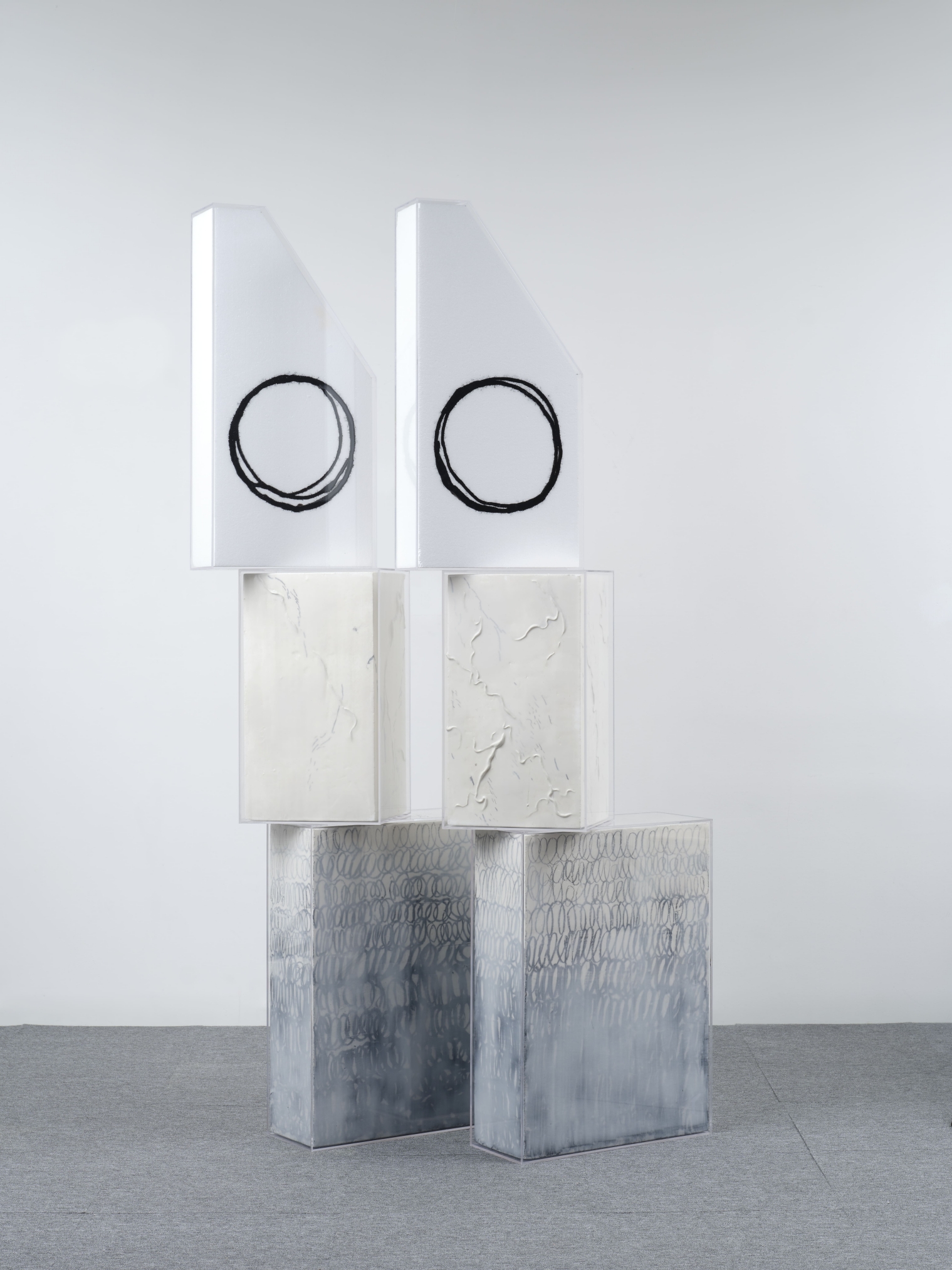 2024 Expanded polystyrene, plexiglass board, putty, silicon, epoxy resin, bronze pipe, urea resin, charcoal 210 x 110 x 70 cm