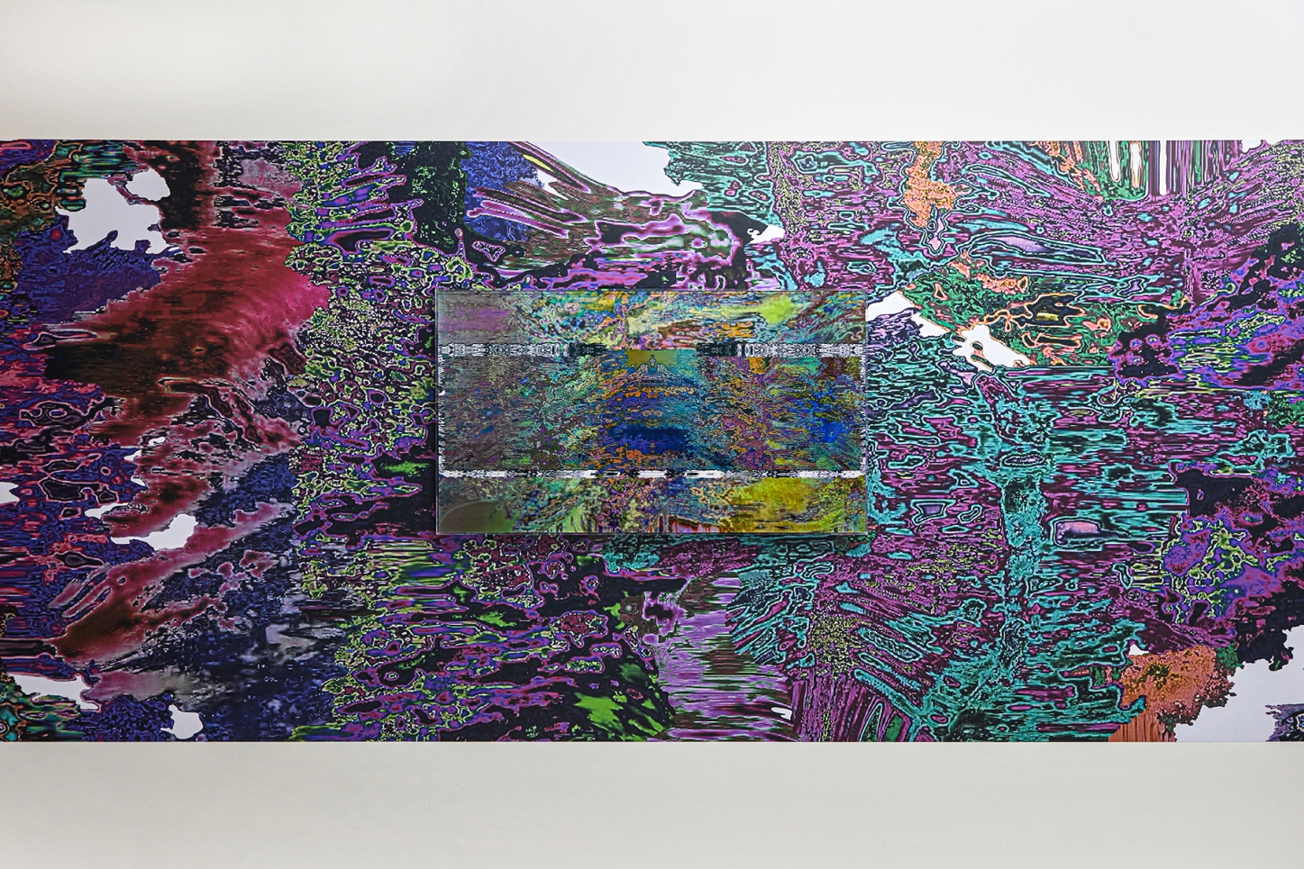 Daseul Song’s work unfolds from a sustained interest in today’s media environment. In particular, she focuses on the properties of images in which visual elements within various devices and screens are refracted and permeated by the external reality beyond them. To visualize this, Song generates IDs that drive abstract moving images and, through them, develops a methodology for producing and materializing image data. In this process, a reified digital skin fluidly traverses between media networks and reality, transforming bodily perception.