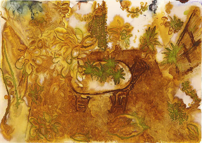In her early drawing practice, Park notably used wine as a ground material in place of paint, layering ink over it. In works such as At the Terrace(2017), the scent and bleeding of wine, together with the stains formed by ink marks, evoke tactile and olfactory sensations beyond the visual, synesthetically reconstructing the unfamiliar landscapes she experienced. This approach later extends into her printmaking practice through the textures produced by needle-scratched copper plates and effects of seepage.