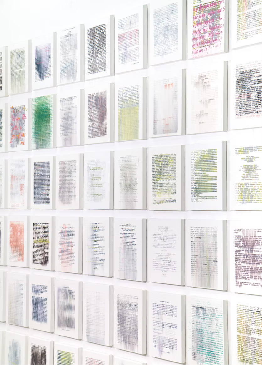 Wonjin Kim is an artist who has explored the condition of memory as it mutates and fades over time. In her early work Re-Constructed Time Shelves(2013), she focused on revealing the very process of disappearance and transformation by pulverizing discarded books or stacking them in strata-like formations. During this period, she defined herself as a “librarian of oblivion,” collecting the points at which records vanish and binding erased traces together like geological layers to present them as masses of time. Memory was treated not as a fixed record but as a material state that is continuously revised and accumulated.