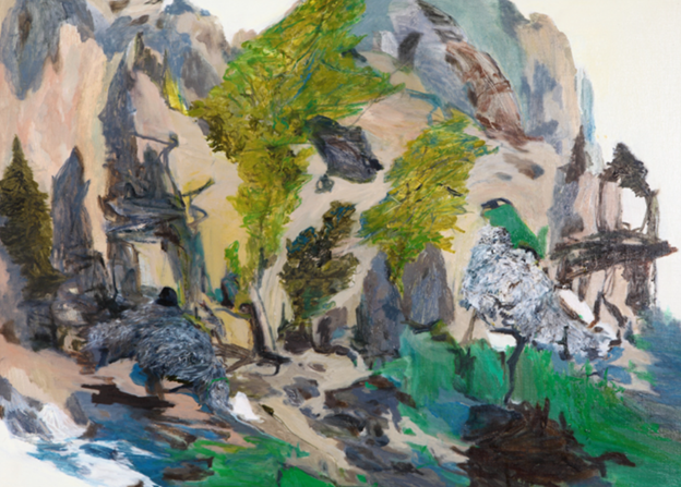 Although Choi Suin works primarily in oil painting, her approach is closer to theatrical staging than to the conventions of static landscape painting. The figures within her canvases resemble natural forms, yet they are not depictions of nature itself; rather, they are arranged like props that correspond to particular emotions and attitudes. Mountains, clouds, waves, fire, and explosions function less as background than as devices that generate events, prompting viewers to confront not so much “what is happening” as “what emotional state is being arranged.”