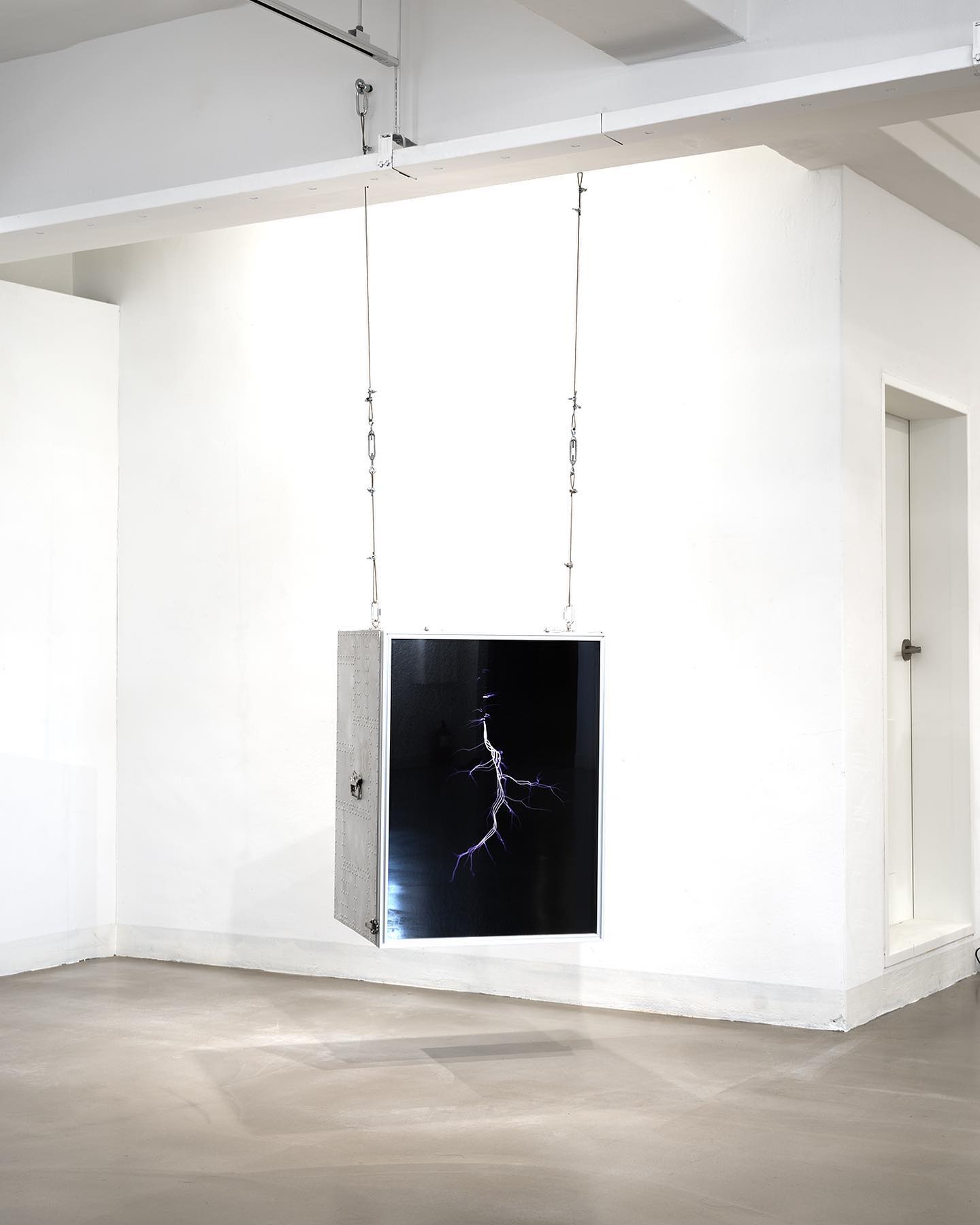 This transformation becomes evident in works such as Navidance(2021). The frame is no longer a secondary device that protects the photograph but expands into a sculptural entity that overwhelms the image. Metal structures covered with spikes or thick steel exteriors capture the viewer’s gaze before the image itself, destabilizing the hierarchy between inside and outside. In this moment, the work raises the question of “what is essential,” reversing the relationship between image and structure.