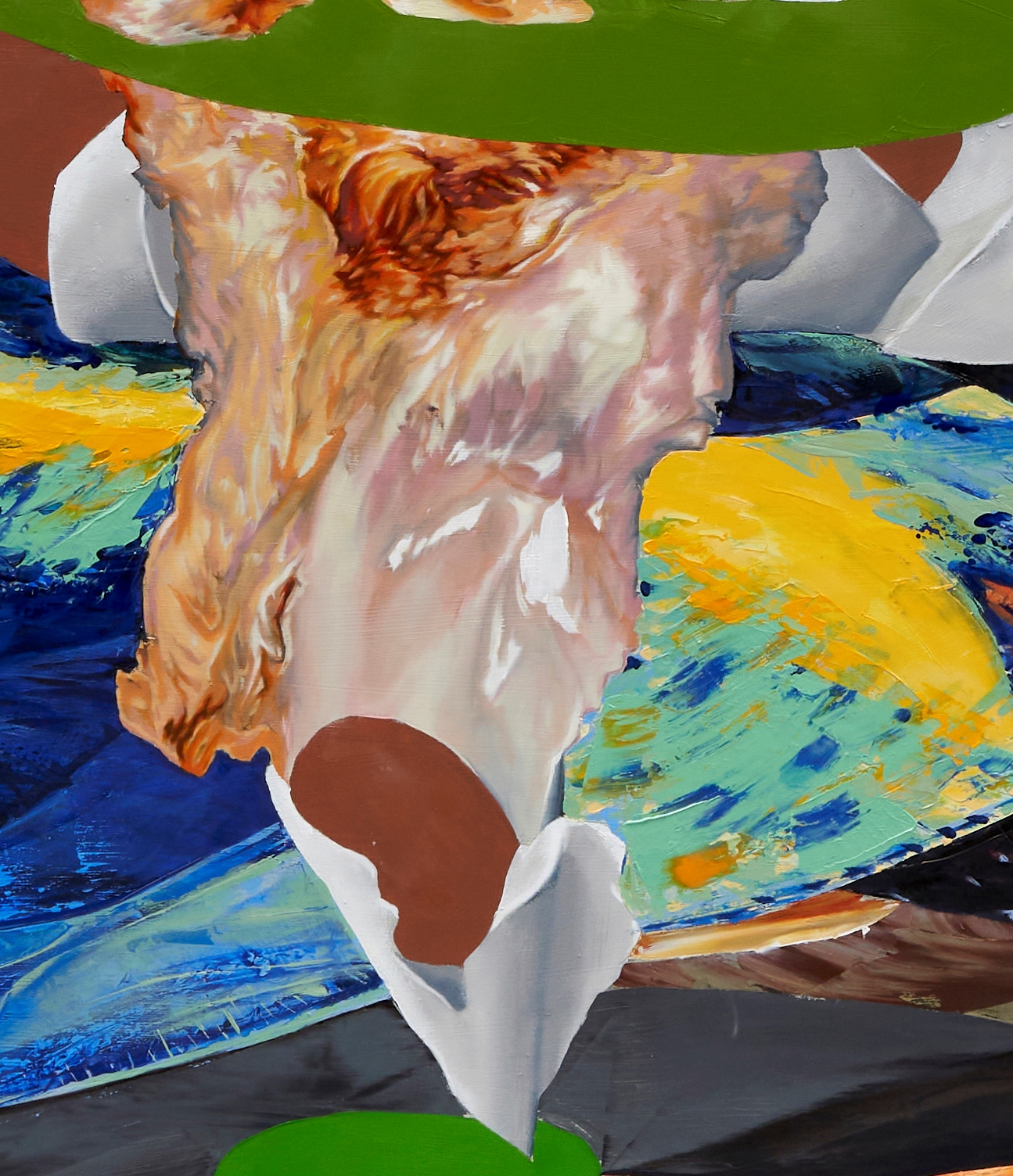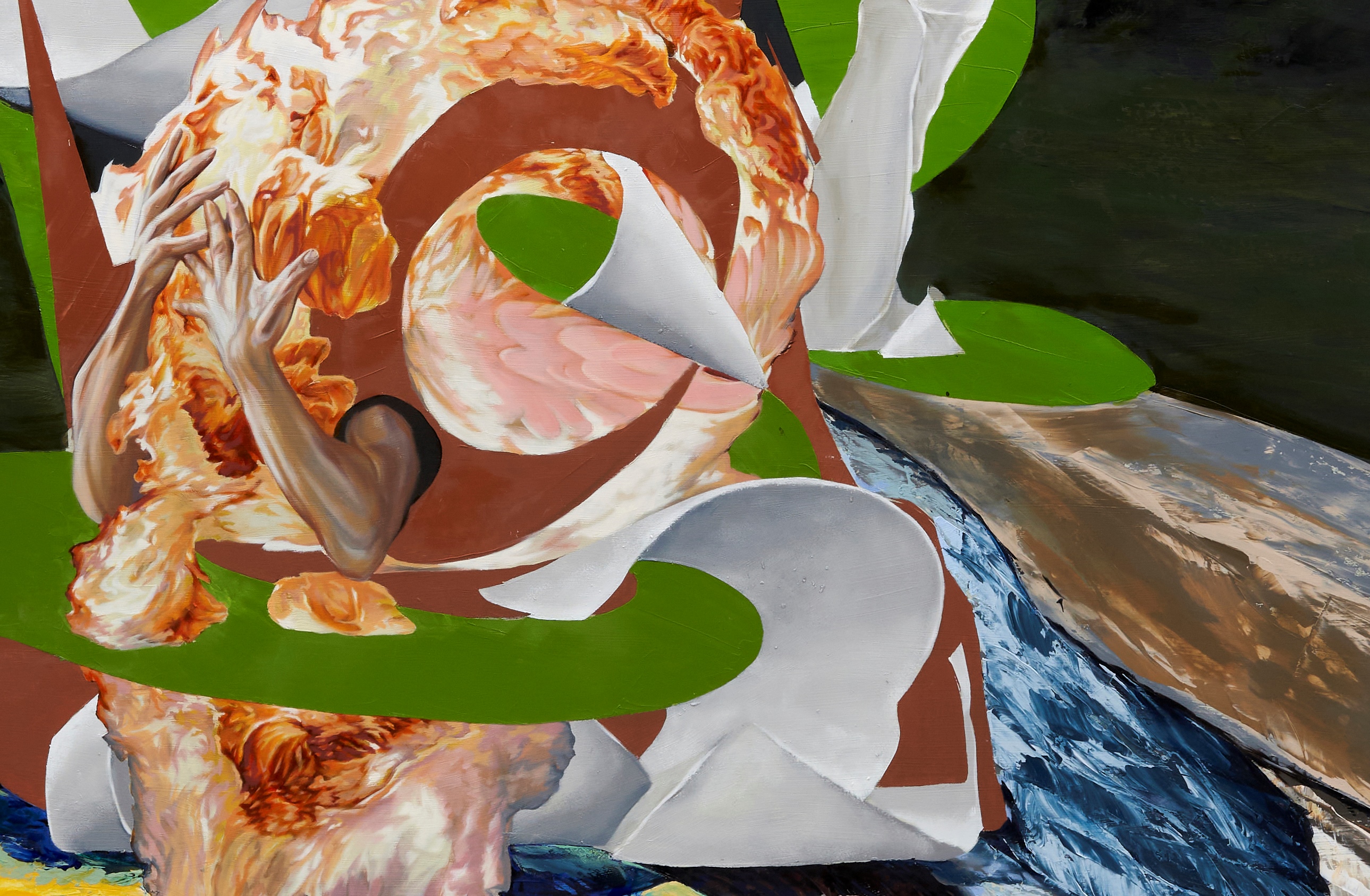 Figures and forms in the paintings appear structurally dismantled, blurred, or distorted through layered brushwork. These visual disruptions are less about depicting physical change and more about revealing multiple potential states at once.