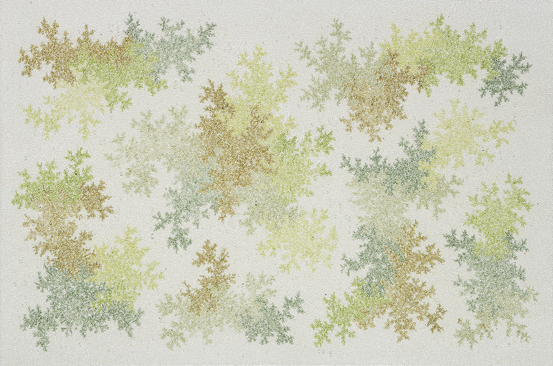 However, there is a decidedly distinctive approach to the images in Lee’s recent paintings, which is the amalgamation, or synthesis, of opposites, rather than their simple dualism. Whilst his previous paintings emphasised the paradoxical resemblance of the microscopic world and cosmic space, Lee’s recent paintings seem to explore a kind of universal order innate in these opposite worlds, allowing controlled yet self-generating patterns and forms to extend what the artist has started with the initial composition.