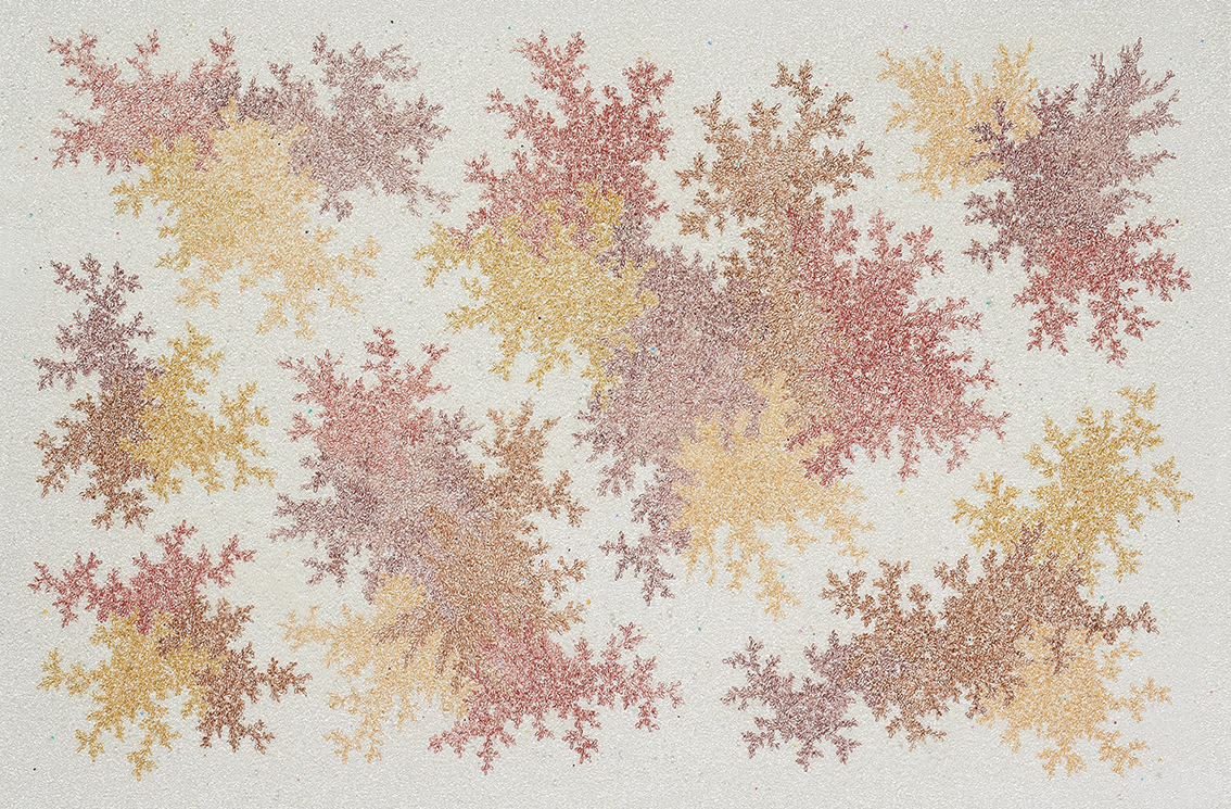 However, there is a decidedly distinctive approach to the images in Lee’s recent paintings, which is the amalgamation, or synthesis, of opposites, rather than their simple dualism. Whilst his previous paintings emphasised the paradoxical resemblance of the microscopic world and cosmic space, Lee’s recent paintings seem to explore a kind of universal order innate in these opposite worlds, allowing controlled yet self-generating patterns and forms to extend what the artist has started with the initial composition.