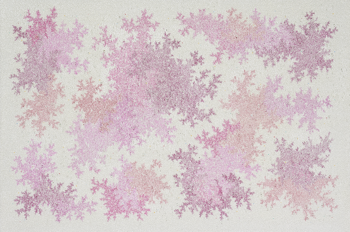 However, there is a decidedly distinctive approach to the images in Lee’s recent paintings, which is the amalgamation, or synthesis, of opposites, rather than their simple dualism. Whilst his previous paintings emphasised the paradoxical resemblance of the microscopic world and cosmic space, Lee’s recent paintings seem to explore a kind of universal order innate in these opposite worlds, allowing controlled yet self-generating patterns and forms to extend what the artist has started with the initial composition.