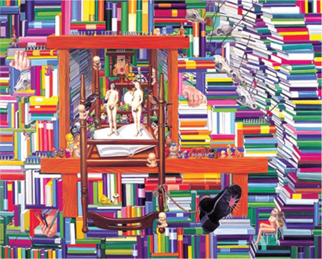 Another of Hong Kyoungtack’s renowned works, the ‘Library’ series, was inspired by Chaekado (책가도), a traditional Korean folk painting depicting bookshelves, which he stumbled upon by chance. In the ‘Library’ series, Hong reinterprets the space of a library—where human history accumulates—in a modern context, embedding within it the conflicting and proliferating desires of contemporary individuals.