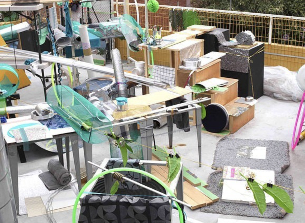 The integration of performance further expands this sculptural concept. In Becoming your street tree or becoming your fence of veranda(2017), plant-like decorative objects, the performer’s bodily movements, and language come together to form a single scene. Instruction-based sentences guide the performer’s actions, which in turn alter the relationships between space and objects, generating events. Through this process, sculpture extends beyond a purely material structure to encompass temporality and action.