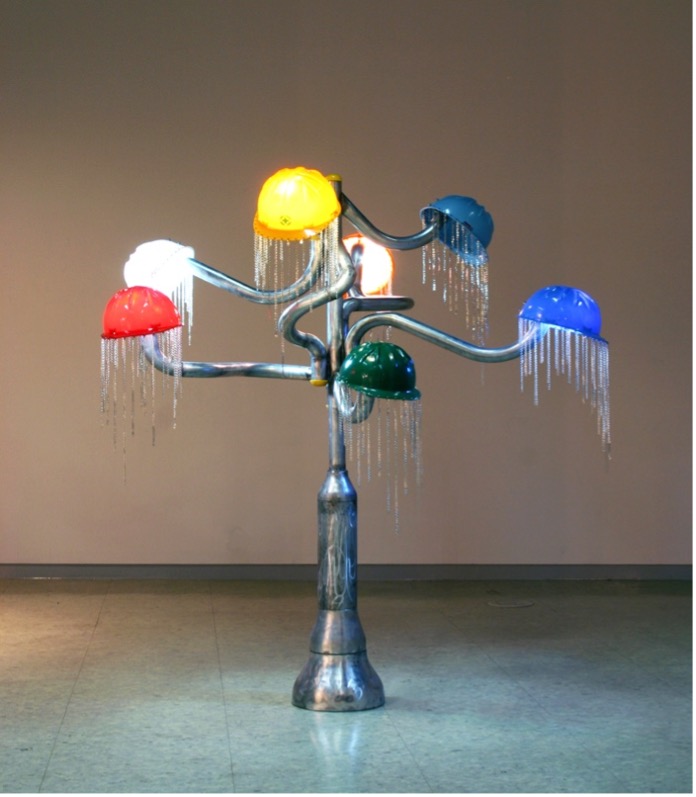 Yoo Hwasoo’s sculptural approach actively incorporates industrial materials and technological media. His early works reconstructed discarded materials, structures, and everyday tools, subverting their original functions. In Dolce Vita (2010), presented along Cheonggyecheon-ro, he repurposed construction materials and traffic signs to visually articulate the paradox of urban development and the overexpansion of infrastructure projects. This work was not merely a formal experiment but an effort to reinterpret the socio-political implications of industrial and technological byproducts.