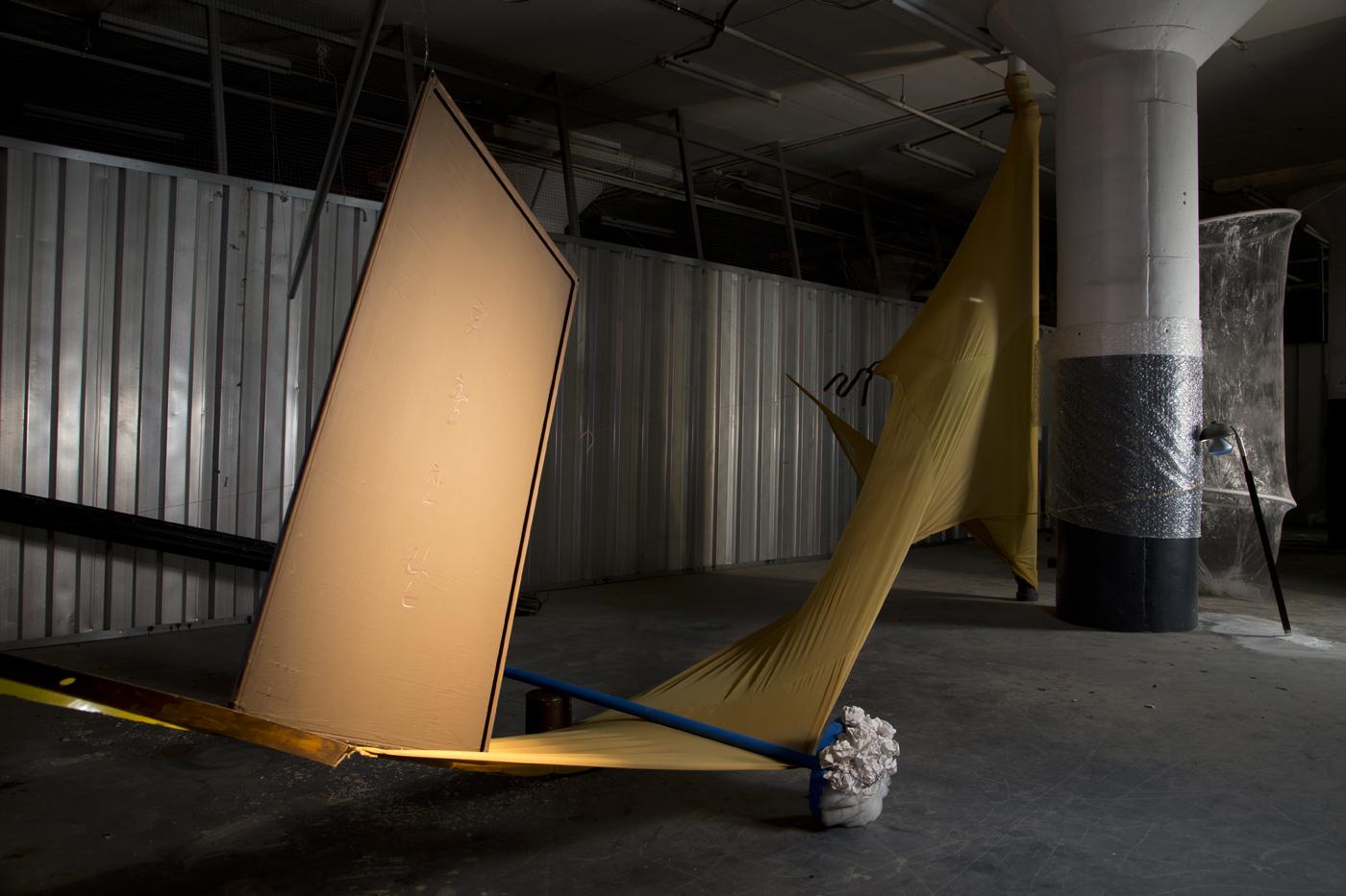 A key formal characteristic in Yoon’s work is the technique of suspension. In A Single Leg of Moderate Speed (2016), she suspended sculptural elements from the ceiling, allowing the state of one element to inevitably influence the entire structure. This approach highlights the idea that sculpture is not a fixed form but rather exists within a continuously shifting relationship of tension.
