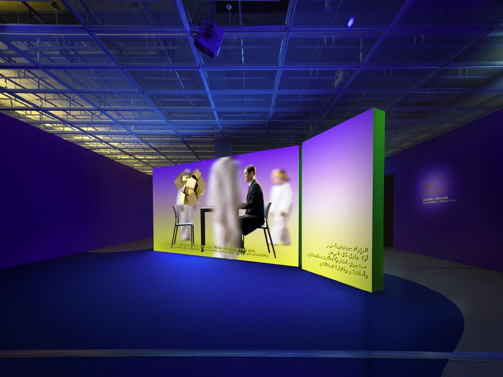 During the subsequent period (2016-2020), Kim increasingly employed multi-channel video installations and surround sound to enhance immersive experiences, drawing viewers into the fabricated narratives within her works. In Porosity Valley, Portable Holes and Porosity Valley 2: Tricksters' Plot, she adopted speculative fiction (SF: Speculation Fiction) that fuses the narrative forms of speculative fiction and science fiction. By deliberately exposing fragmented and disjointed storytelling structures, she navigated abstract concepts of migration, data transmission, and geopolitical shifts.