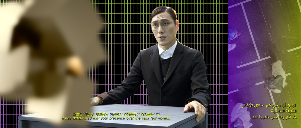 Ayoung Kim has consistently focused on reconstructing modern historical events and contemporary issues into complex narratives. In her early works, she employed historical records as source materials, creating narratives that traverse the boundaries between fact and fiction, as well as past and present. As her practice evolved, Kim deepened her exploration of involuntary migration issues, encompassing ecological, political, and economic perspectives that transcend national boundaries. Since the pandemic, her work has increasingly focused on the acceleration of labor in the digital age, platform capitalism, possible worlds theory, quantum physics, and accelerationism.