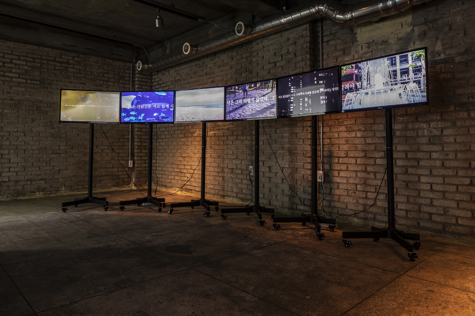 Dispersed Bodies Reunion (2022) critically examines how contemporary media portrays women’s bodies during tragic historical events in Korea. By repeatedly framing women’s bodies in trance-like states, the video installation explores the consumption and reproduction of female bodies within media, emphasizing the psychological dissonance between physical presence and recorded image. Through these varied mediums, Cho continues to deconstruct stereotypes and reconstruct narratives of female identity and caregiving within sociocultural contexts.