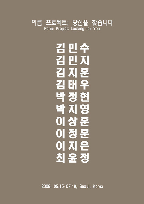 Name Project: Looking for You in Seoul(2009) and Name Project: Ivan Party(2006-) subvert social codes by using names as the medium of identity and community. Whether by searching for people with common names or creating posters to commemorate year-end parties of the gay community, these acts inscribe the existence of invisible minorities into the social landscape, while leaving the condition of “anonymity” as artistic evidence.