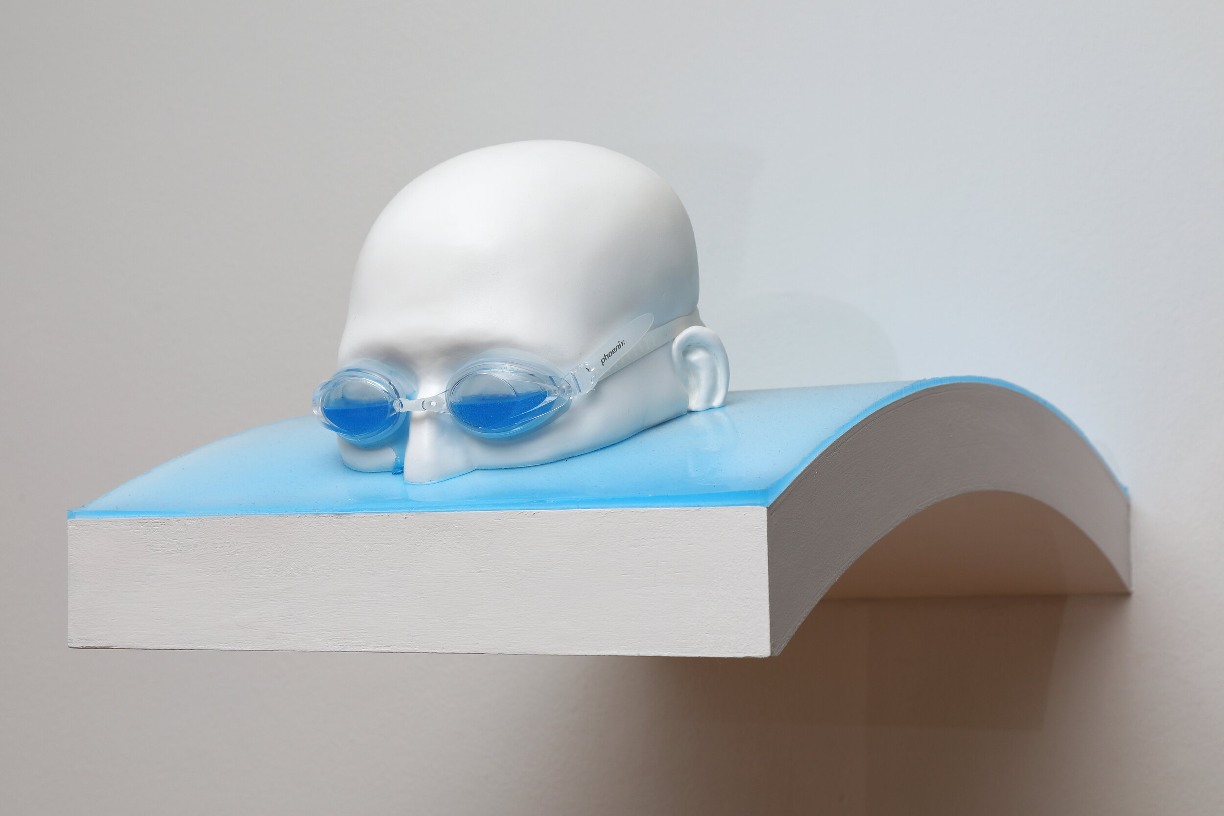 This sculptural language evolves into narrative structure in exhibitions such as 《You Again》(os, 2019) and 《I swim to cry》(SONGEUN ARTCUBE, 2020). Hyen creates objects where materiality and symbolism are layered, using elements like silicone, clay, wire mesh, goggles, locks, and door stoppers.