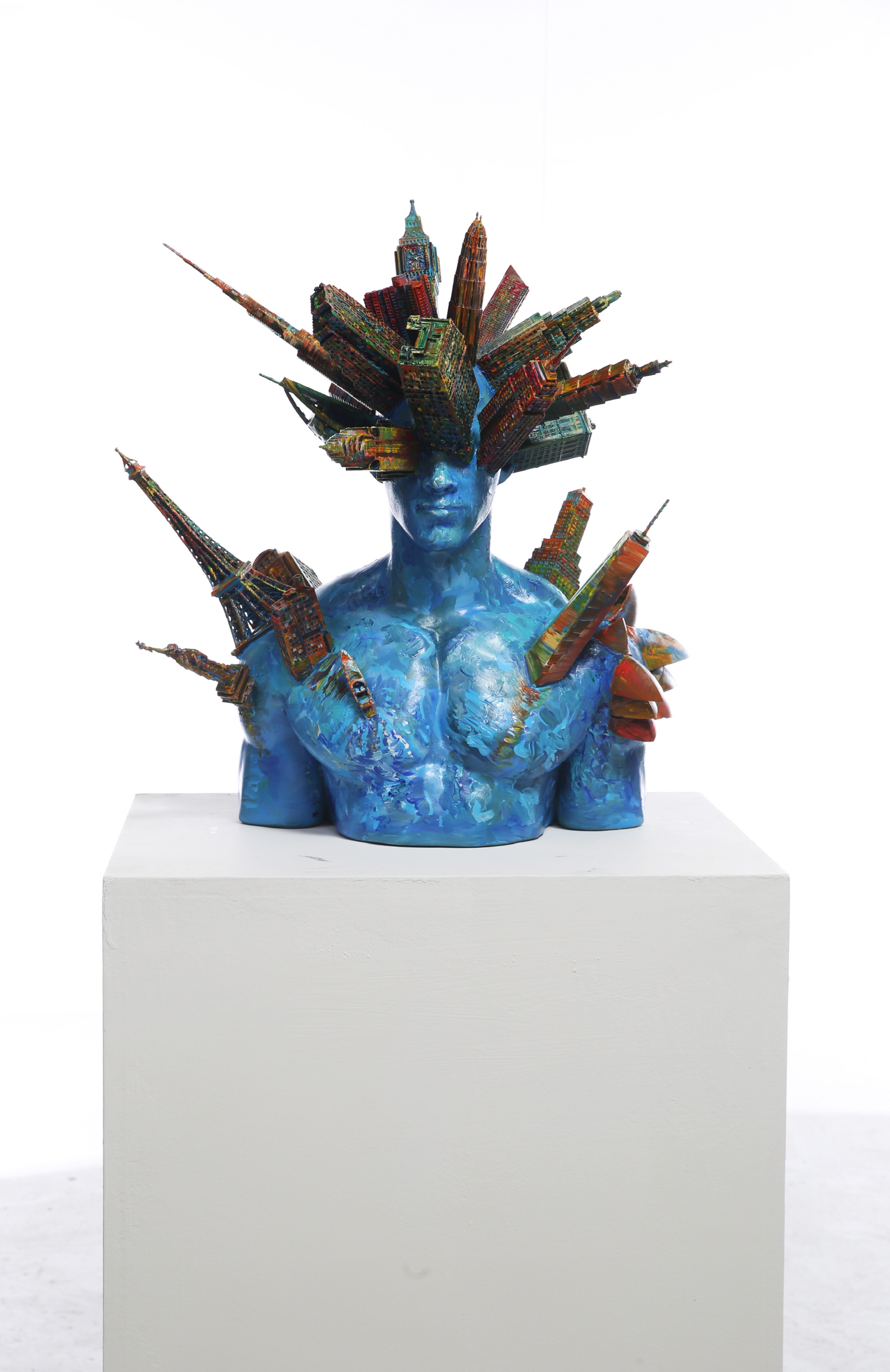 In the artist’s recent series, he deals with more diverse materials and concepts, such as mutants between gods, which seems like a masterpiece of Rodin or mutants between Marvel characters.