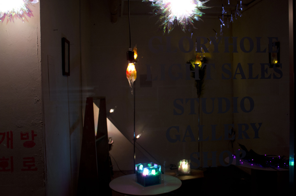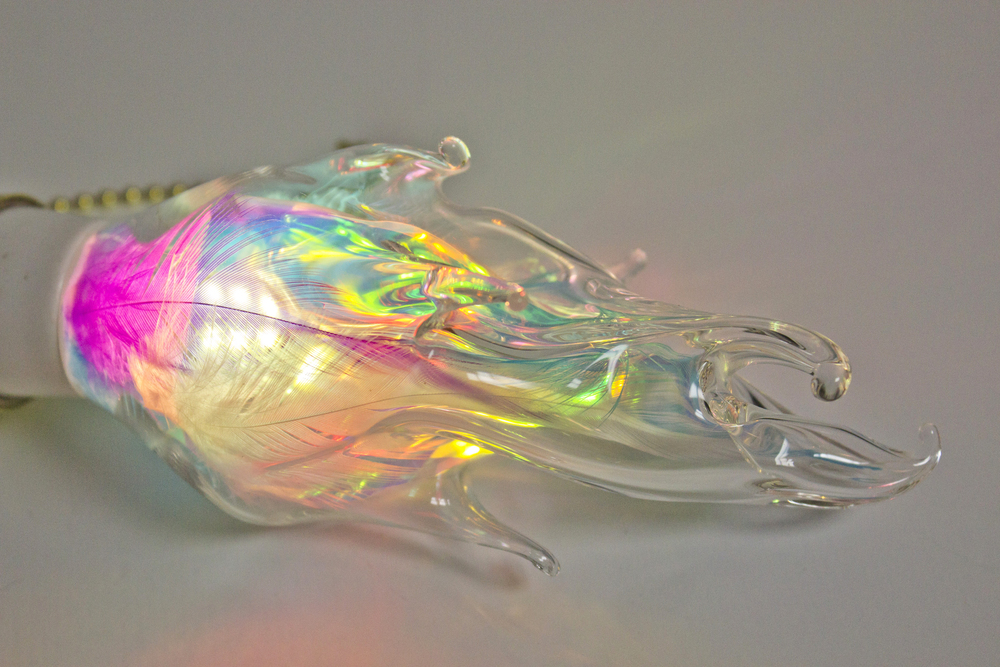 Park’s practice is grounded in traditional glassmaking techniques such as glassblowing and lampworking. In early works like Gloryhole Bulb(2015), she used these analog methods to craft functional lighting objects, transforming intangible light into material form. These pieces exemplify the hybrid nature of her early work—operating at the intersection of form and function, art and commerce.