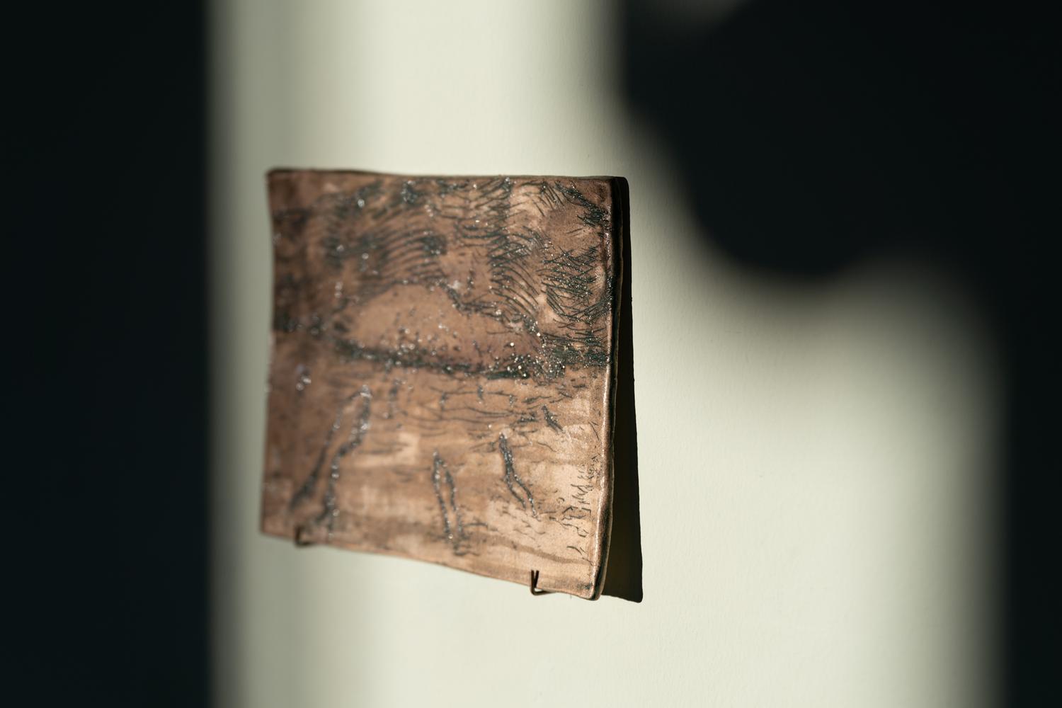Ru Kim’s practice begins with historical–philosophical research that excavates the ideological foundations of violence. Peoples of Europe, Defend your Holiest Possessions(2019) reads a Russo-Japanese War–era lithograph and the “Yellow Peril” discourse against Germany’s migration histories and contemporary racism, asking, “Who has the right to remain where?” The subsequent Tax Returns/분청사기상감인화문붕명둔접(2020) grafts the fifteenth-century courtly mark bung (朋) recorded in the Veritable Records of the Joseon Dynasty onto contemporaneous tribute porcelain to reconfigure relations among power, tax, and the body. From here the artist consolidates a tripartite schema in their own terms: “attested past — present violence — the possibility of escape.”
