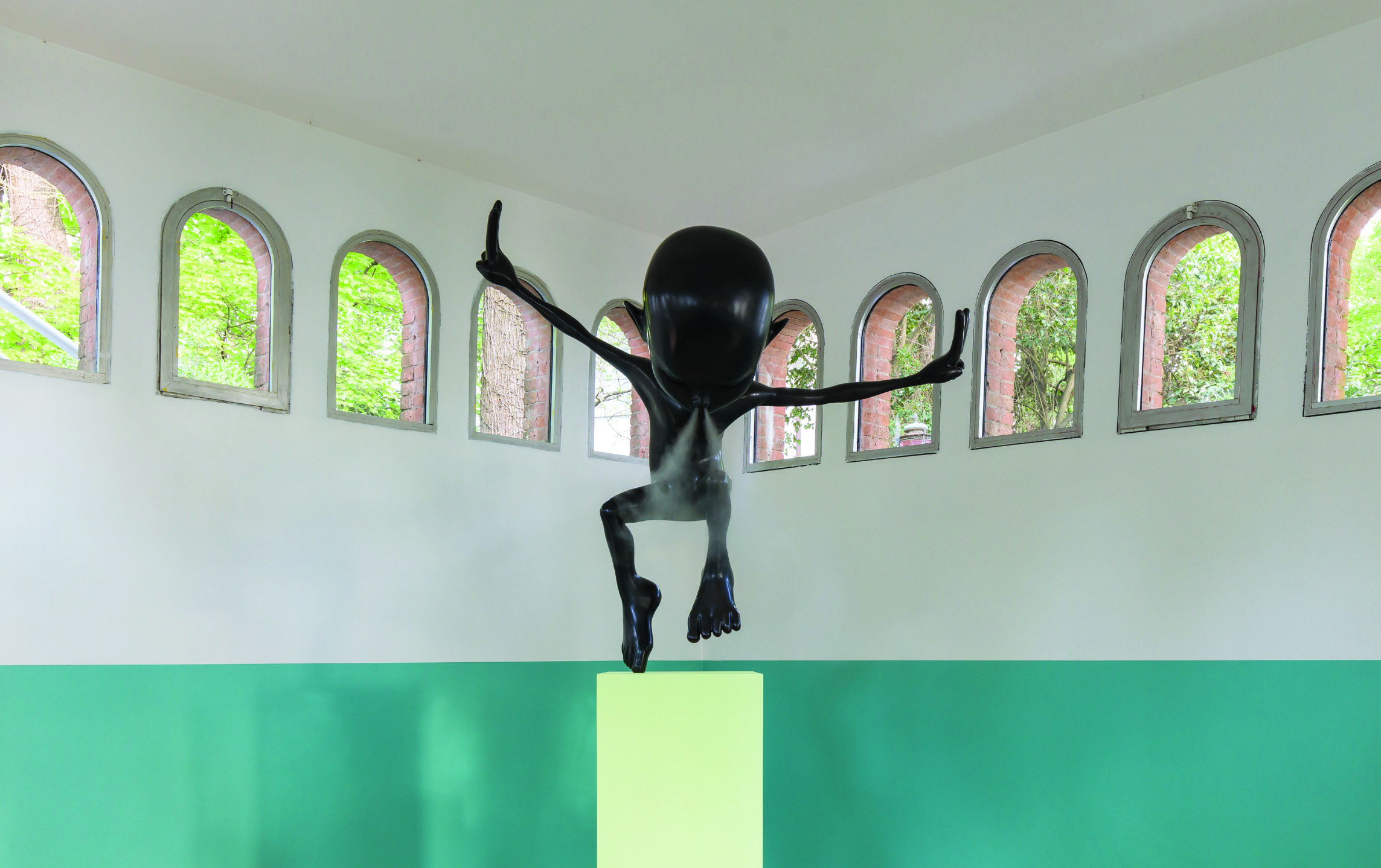 어딘가로부터 날아와 한국관에 방금 도착한 듯 보이는 그의 모습은 만화 캐릭터를 상기시키며