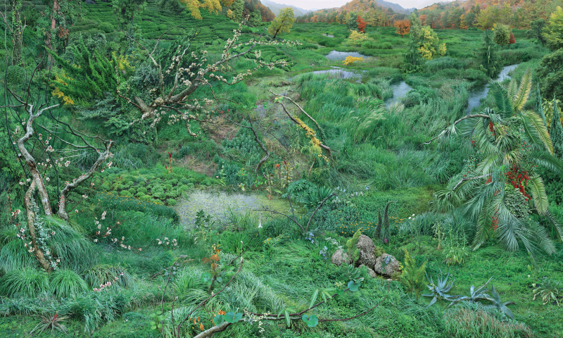 꽉 채우고 있는 나무와 물, 풀과 들판은 작가가 직접 발품을 팔아서 채집한 이미지여서 사실적이다. 그러나 대상을 촬영할 때 한 컷으로 찍는 게 아니라고 했다. 예를