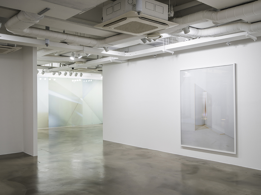 작가는 이렇게 구성한 이미지를 출력하는 매체에 대한 고민도 깊었던 듯하다. ‘CONSTRUCT’의 다른 작품은 모두 피그먼트 프린트로 출력했는데, 평면적 연출이 유독 두드러지는 두 점의 사진은 유리에 UV 프린트로 출력하여 선보였다. 유리 특유의 매끈한 질감 아래로 비치는 이미지는 3차원 공간을 찍은 사진인데도 마치 그래픽 이미지를 보는 것 같은 느낌을 준다.