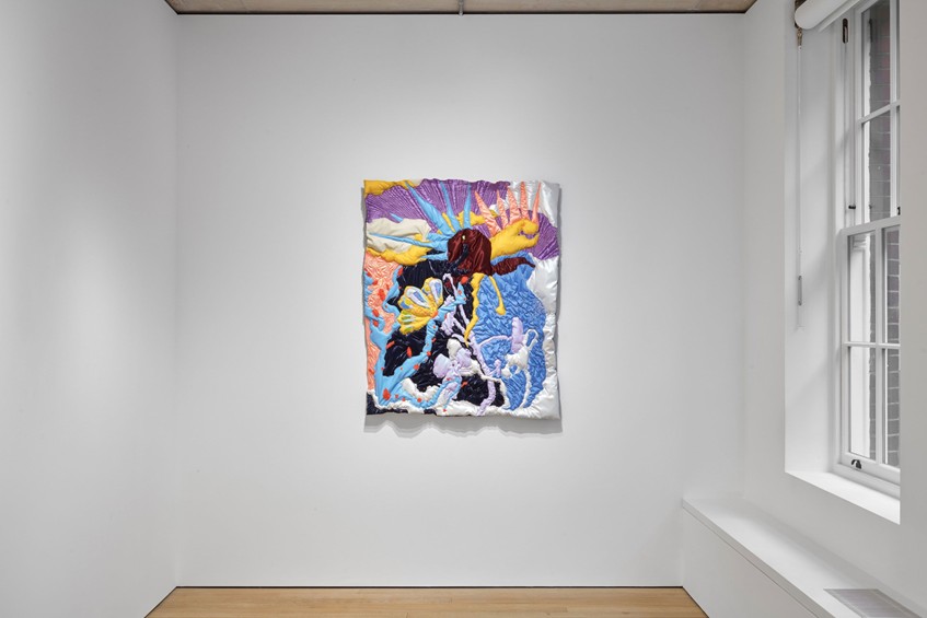 Woo, With them, 2023, fabric on wood board, 139 x 120cm ©Hannah