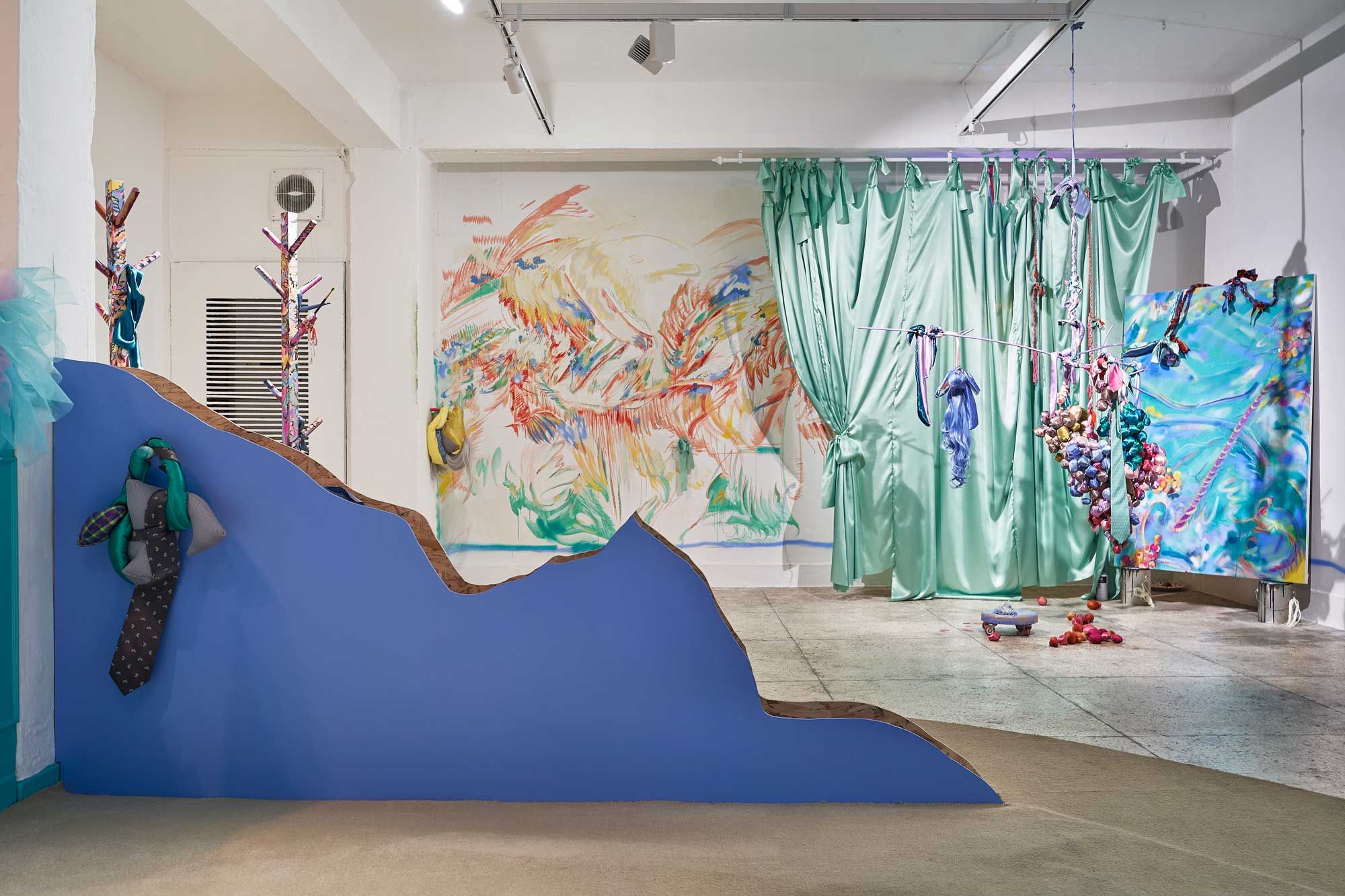 쿠뛰르 드레스 〈물라쥬 멜랑콜리크〉, 대형 펜던트 모빌 〈바쿠스〉 등을 설치하는 동시에 각종 오브제들과