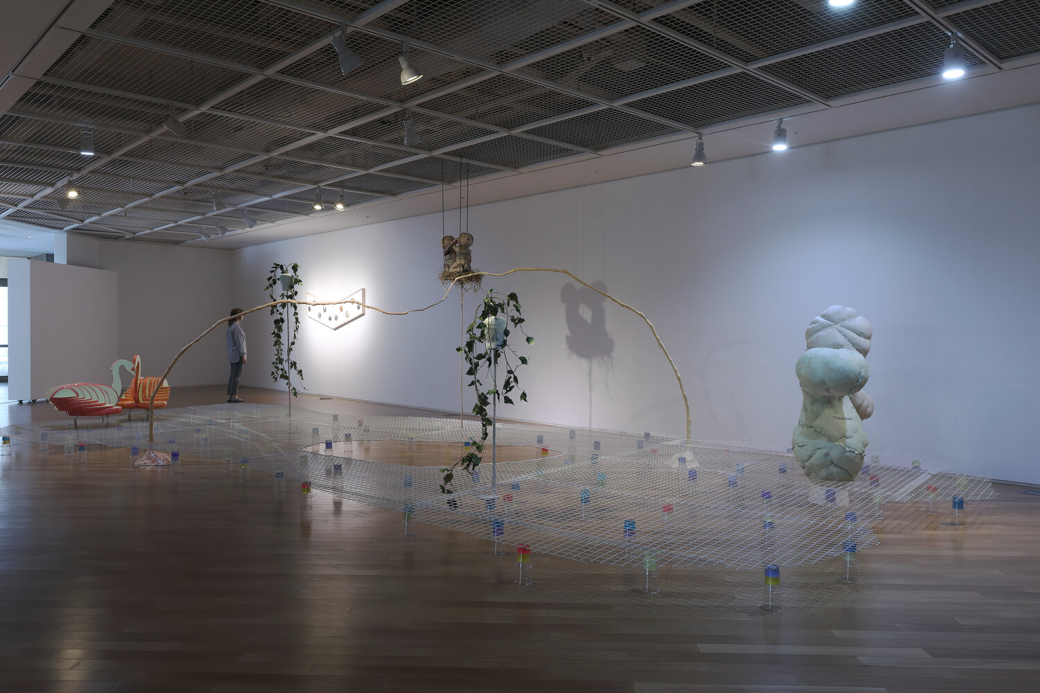 and Feeling me(2023) 등에서는 재료 간의 물리적 긴장과 조각의 촉각성, 생성성이 더욱 강조된다. 실리콘과 레진, 쇠파이프가 유기적으로 휘감기는 구조는 생물체를 연상시키며, 성별이나