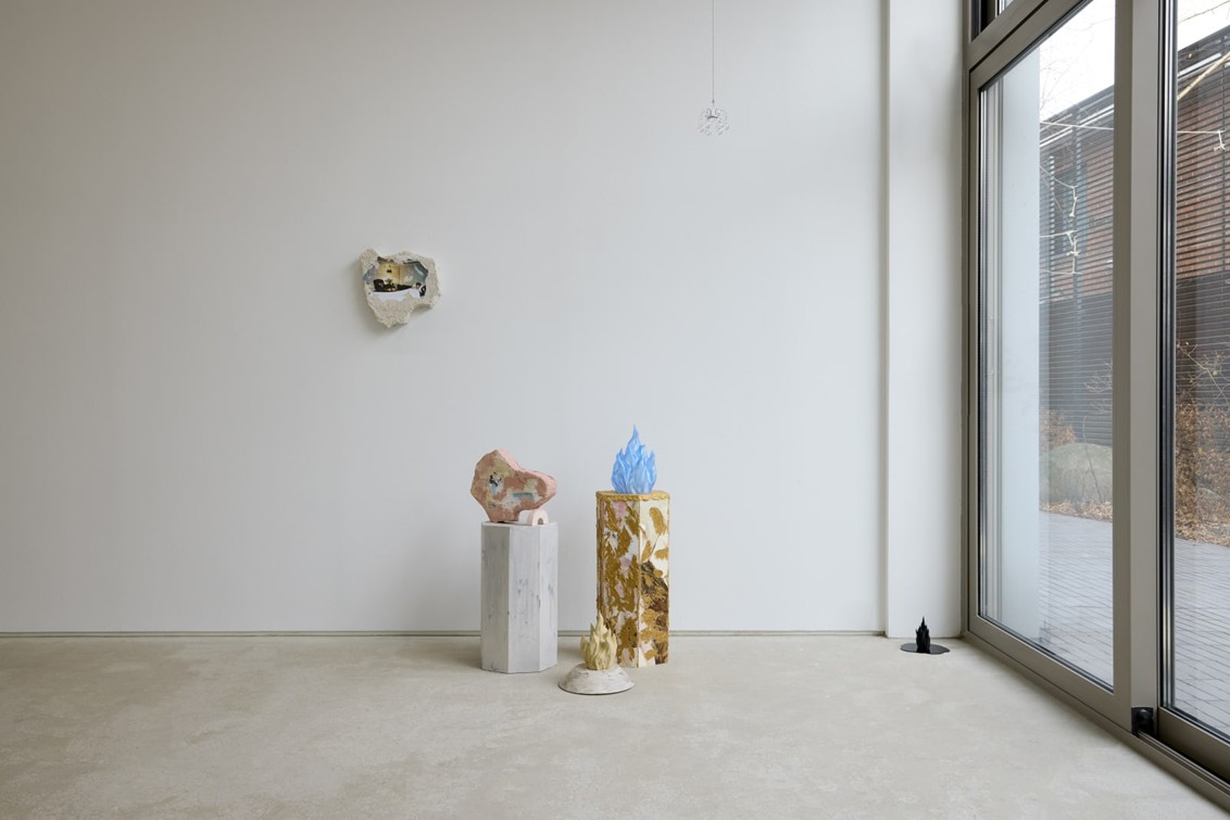 그 위에는 겨울과 더움 간 느슨하고 비약적인 연결을 토대로 제작되거나 소환된 조각들이 한데 엉키며 각양각색의