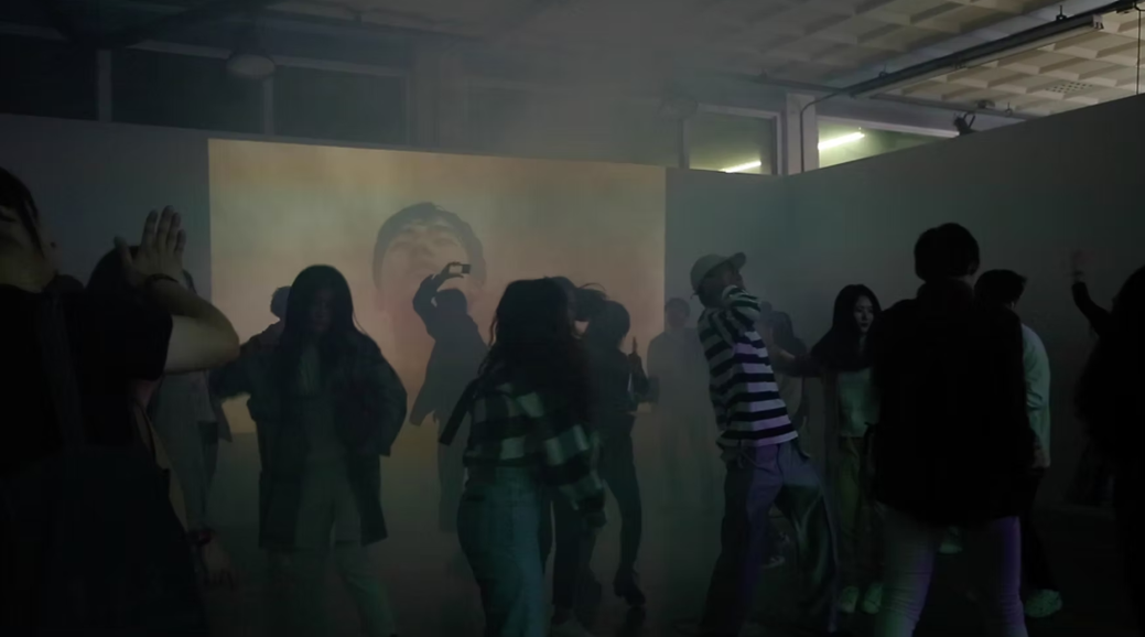 몽환적인 스크린 앞 공간에선 많은 사람이 남성처럼 EDM사운드에 몸을 맡기고 춤을 춘다. 어느 순간 한 사람 한 사람씩, 마치 배터리가 다 한듯 그 자리에