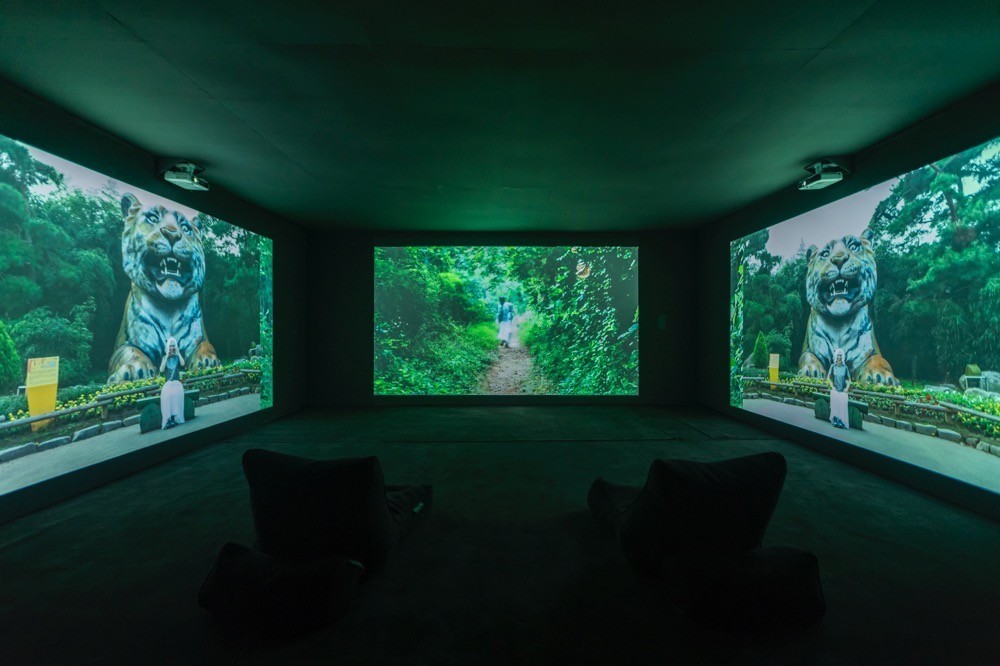 3채널로 상영된 〈하나코와 김치오빠 외 연속재생〉은 작가가 현실에 반응하는 태도로써 실행한 일련의 행위와