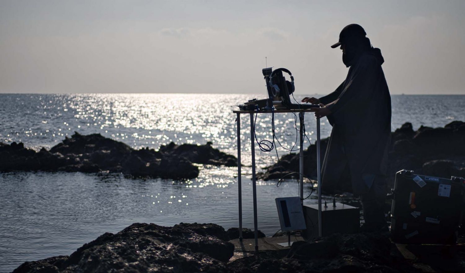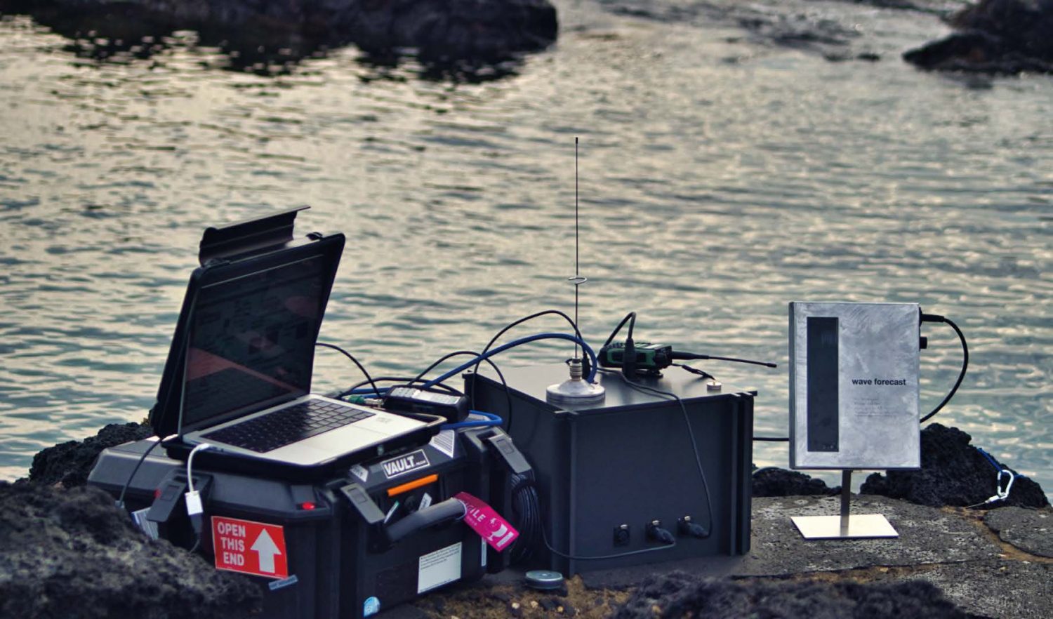기준 시간으로 삼아 거센 바람으로 인해 출렁이는 파도가 굽이치며 검은 현무암 바위를 치는 순간, 자연이 만들어내는 진동의 변화를 숫자화된 데이터로 기록한다. 전기