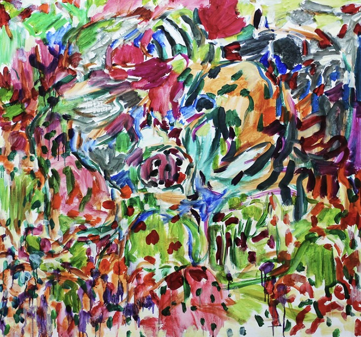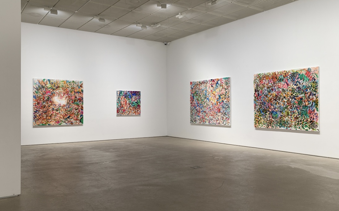 그런 점에서 작가가 창조한 회화 공간은 어느 한 특정 숲의 공간이 아닌 중립적, 잠재적 공간으로서의 비장소(non-lieu)성을 띤다. 비장소는 장소에 대한 부정의 의미가 아닌 여러 공간의 중첩된 가로지르기, 즉 상호 대체와 호환이 가능한 공간을 말한다 (마크 오제 Marc Augé). 작가가 어린 시절부터 현재까지 여러 숲에서 경험한 시각, 촉각, 청각 경험의 편린들이 작가의 무의식의 폐부로부터 분출된 에너지의 힘으로 순간적, 즉각적, 충동적으로 한 화면의 캔버스 공간을 가로지르며 유입되고 병치된다. 실제로 작가는 “나는 회화적 공간을 숲을 거닐 듯이 가로지른다”고 했으며, 페인팅 행위는 각 캔버스마다 새로운 고유의 질서를 부여해 나가는 과정이라고 설명한다.