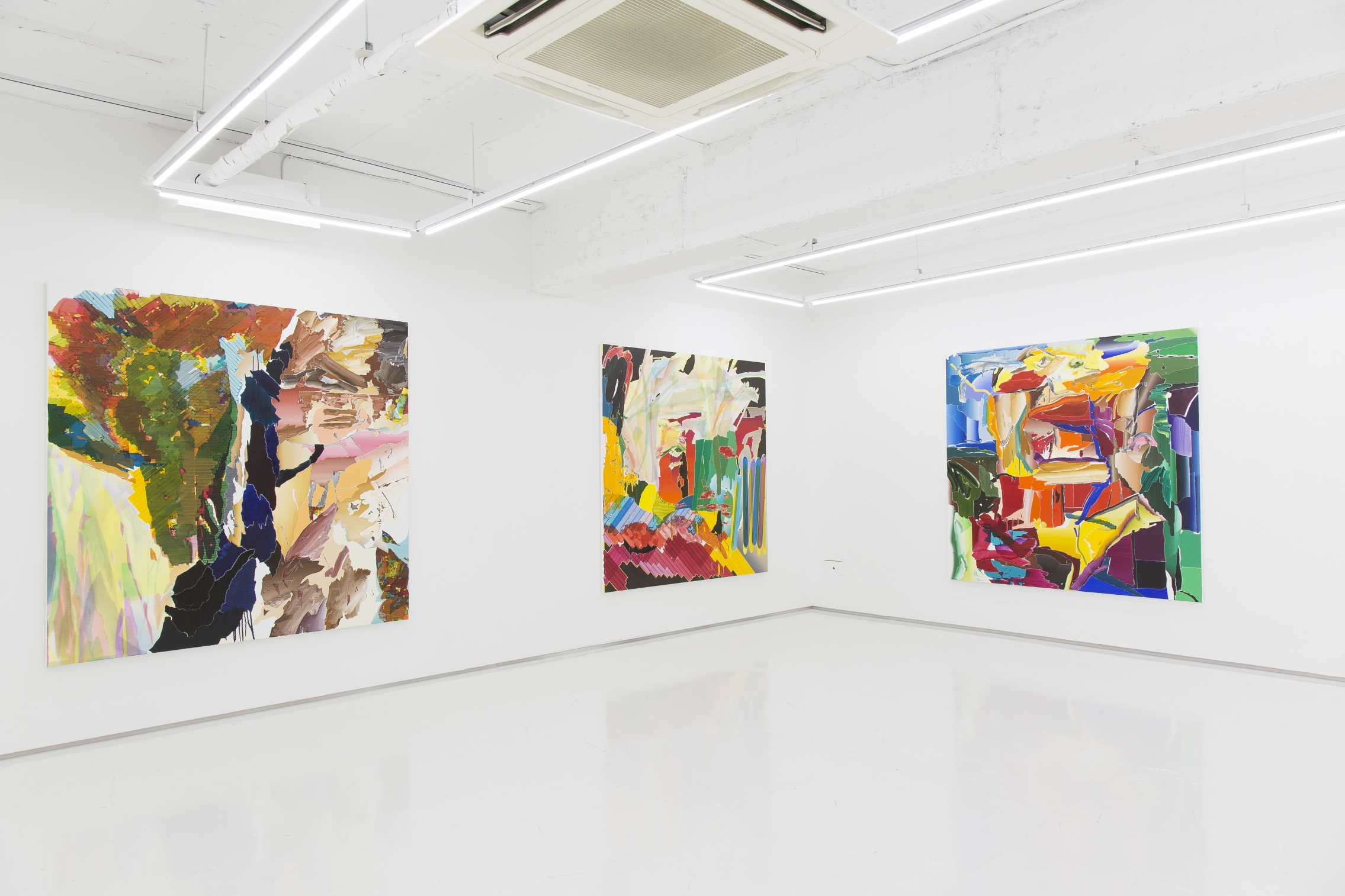 마치 지도에서 개별 행정구역을 나누는 것처럼 보이는 이 같은 틈은 화면 내의 공간을 구획 지으며 분리시킨다. 브러시스트로크 역시 다양한데, 어떤 부분은 묽고 투명하게 채색되어 있고, 어떤 부분은 두껍고 매트하게 칠해졌으며, 어떤 부분은 색이 그러데이션 처리되거나, 여러 차례 겹쳐져 발려있는 것을 볼 수 있다. 또한 완성된 캔버스는 바니시 칠이 되지 않아 마지막으로 물감이 발린 느낌이 그대로 살아 있다. 중심도 주변도 없이 평평하게 이어지는 그의 화면이 나타내고자하는 것은 무엇일까?