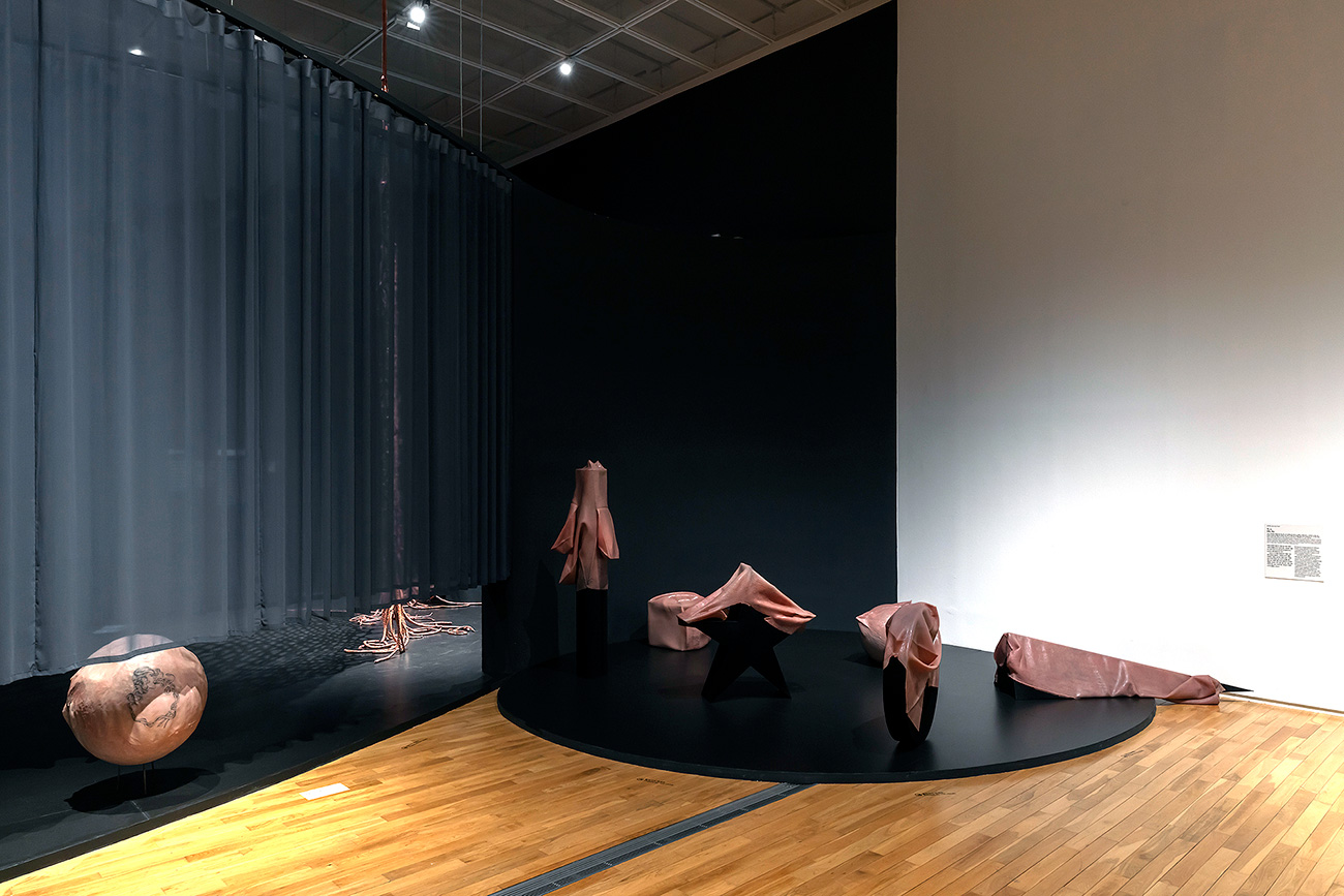 역할을 한다. 인간 신체 부피의 구형 조각 〈계속 밤〉(2019)은, 온도에 반응하여 표면에 새겨 놓은 이야기가 드러나도록 했다. 가려진