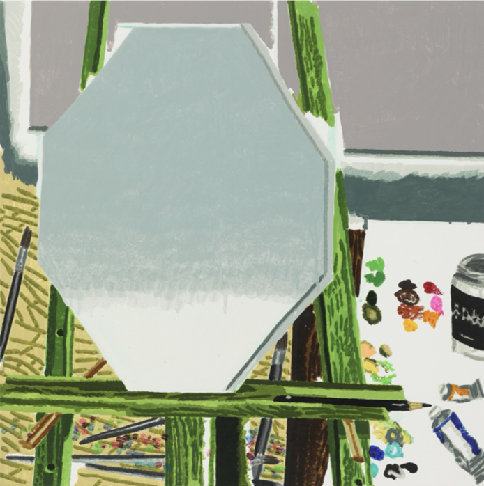 도형이다. 기하학적 도형은 추상적인 형태로 그 자체로는 아무런 사회적 맥락이 없다. 작가는 이 같은 도형을 그리는 이유에 대해 ‘보류하는 것’이라고 말했다. 그는 “나는
