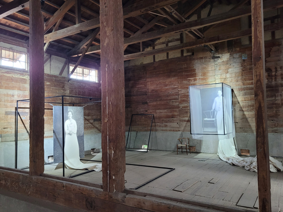 드러난 나무 대들보에 식물 덩굴이 무성하게 얽혀있고 깨진 함석 지붕 사이로 햇빛이 스며드는 110년 된 춘포 도정공장(정미소). 전북 익산에 위치한 이곳에 한복을 입은 앳된 여인의 커다란 흑백사진이 걸려있다. 흰 치맛자락이 사진에서 튀어나와 바닥으로 길게 흘러, 여인이 환영과 현실 사이를 넘나드는 신비로운 느낌이다. 잘 보면 사진 같은 연필 그림에 교묘하게 흰 천을 이은 것으로, 미술가 조덕현(67·이화여대 명예교수)의 작품이다. 그는 옛 사진에 자신의 상상을 추가한 정교한 연필 그림과 설치 작업을 통해 역사와 허구를 섞는 작업으로 유명하다. 그렇다면 이 여인은 실존인물일까, 허구의 인물일까?