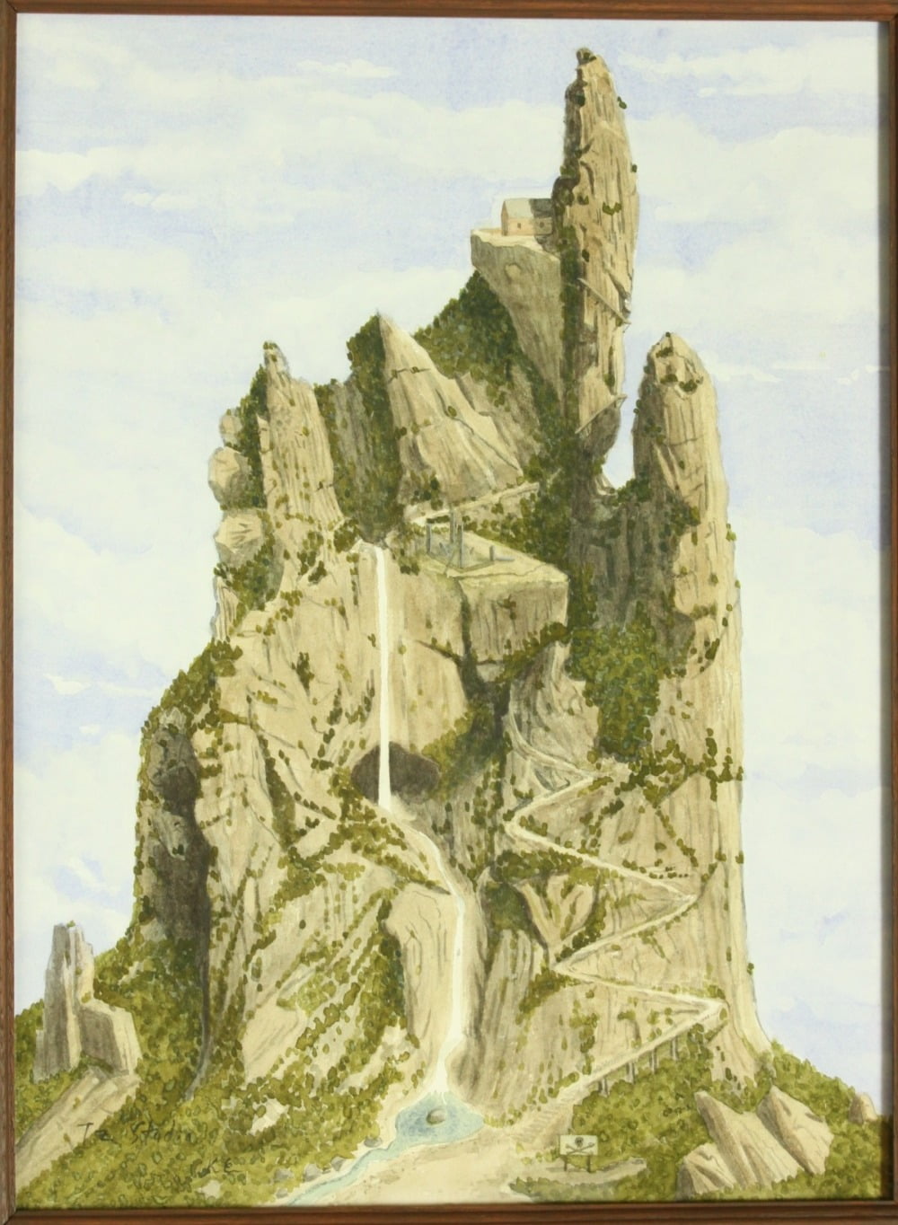 할 것 같은 가장 높은 바위까지 가야 작업실에 당도할 수 있다. 그 와중에 폭포도 쏟아지고 짓다 만 건물도 보인다. 마치 검지를 뻗은 손처럼 보이는