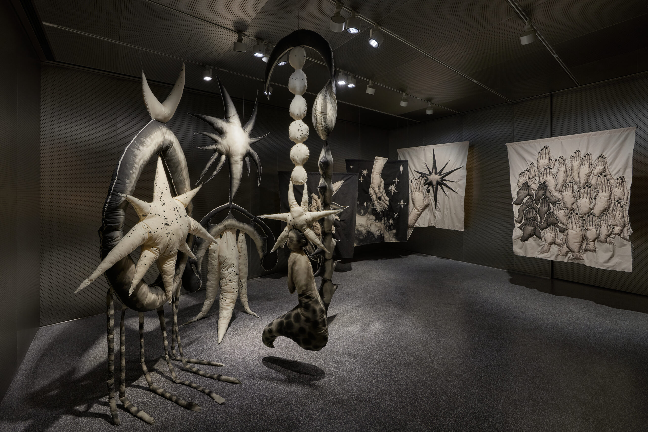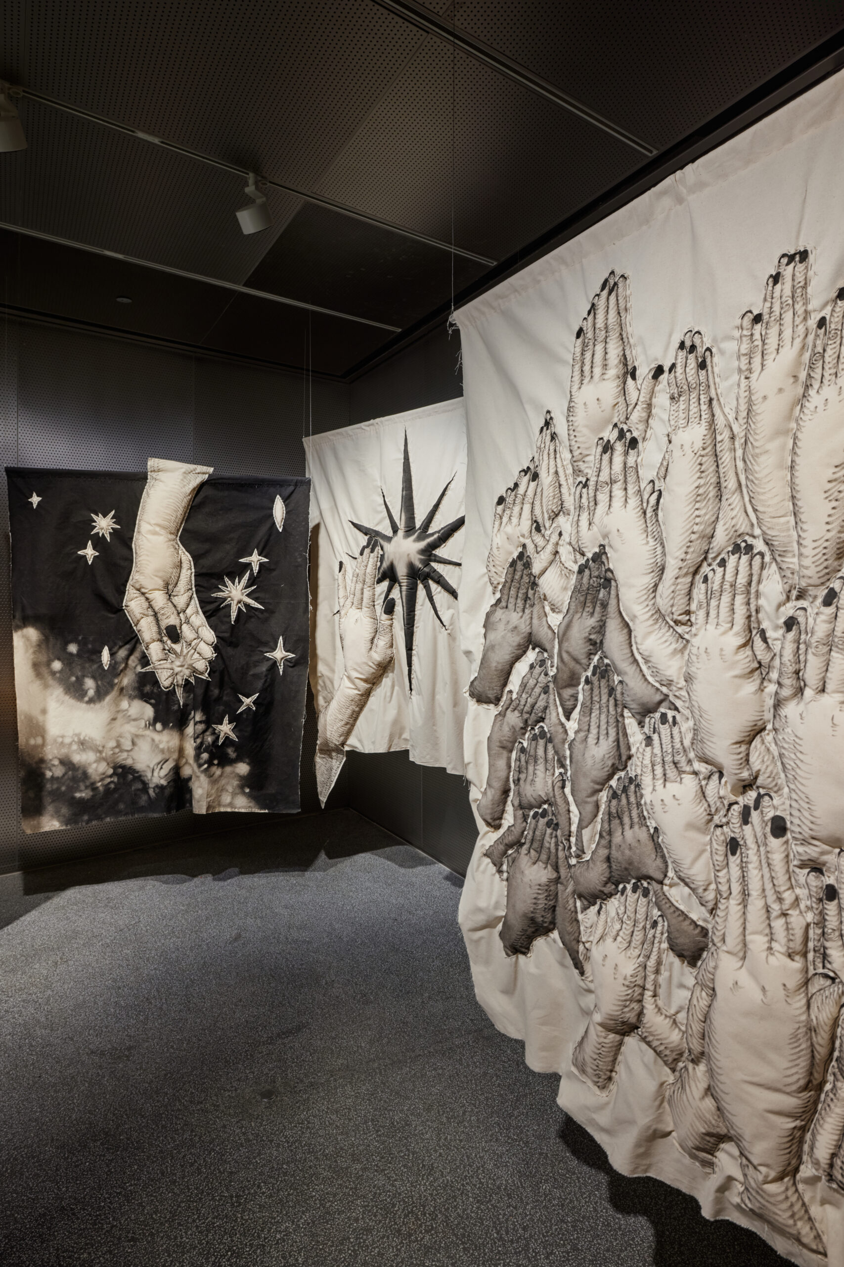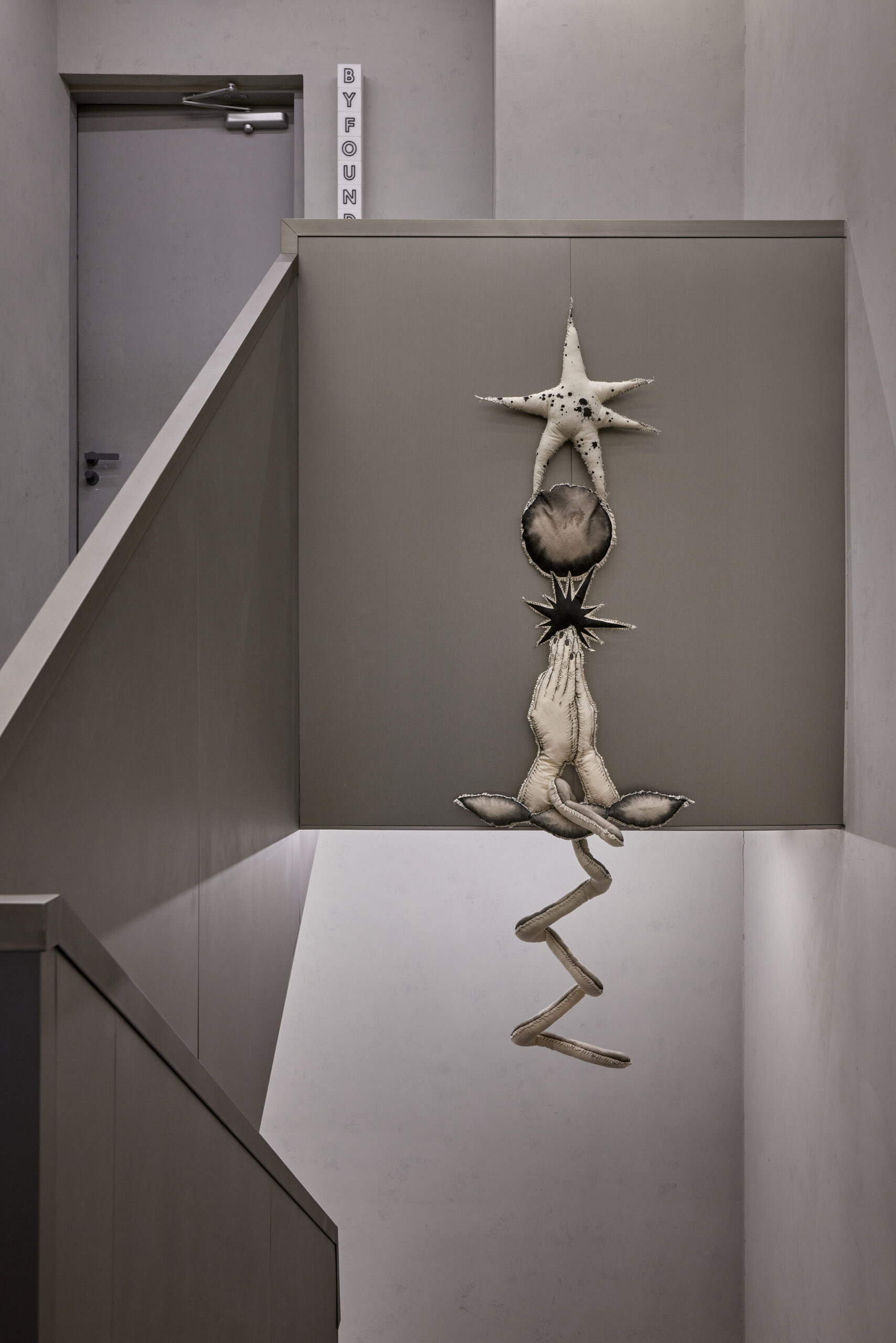 바이파운드리는 2022년 10월 22일부터 12월 18일까지 서울을 기반으로 활동하는 작가 한상아의 개인전 《뾰족한 온기》를 소개한다. 이번 전시에서 한상아는 자신의 내면으로 스며드는 경험과 기억을 광목 위에 먹으로 그리고 오려낸 다음, 실로 단단히 꿰매고 이어내는 수행적 과정을 통해 사랑하는 대상의 평안을 바라는 인간의 근원적 소망을 담은 5점의 입체적 평면 작품과 5점의 평면적 입체 작품을 선보인다.